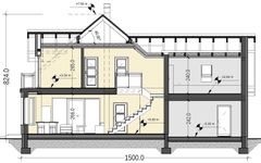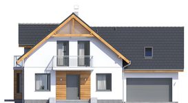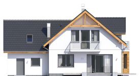 Graficzne opracowanie rzutów poglądowych widocznych na karcie projektu zostało wykonane przez Extradom.pl. Prezentowane przez Extradom.pl wizualizacje wykonane zostały przez autora projektu i należy poczytywać je jedynie za przykład i propozycję wykończenia, wizję architektoniczną autora projektu. Ostateczne wykończenie budynku może nastąpić na wiele sposobów. Szczegółowe rozwiązania zastosowane w oferowanej dokumentacji - w tym również ilość, lokalizacje i wygląd okien, drzwi, kominów - mogą w niewielkim stopniu różnić się od prezentowanej wizualizacji budynku.
