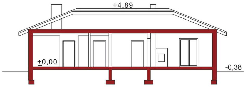 Ściany: bloczek z betonu komórkowego 24 cm, styropian Termo Organika 12 cm, tynk. Strop: drewniany. Dach: wielospadowy, nachylenie 22 st. , więźba drewniana, dachówka ceramiczna ocieplenie dachu: wełna mineralna ISOVER Uni Mata ogrzewanie: gazowe, paliwo stałe ( płatny dodatek).