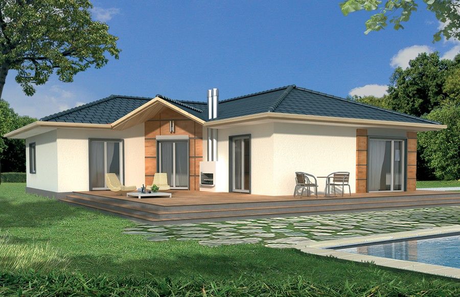 Ściany: bloczek z betonu komórkowego 24 cm, styropian Termo Organika 12 cm, tynk. Strop: drewniany. Dach: wielospadowy, nachylenie 22 st. , więźba drewniana, dachówka ceramiczna ocieplenie dachu: wełna mineralna ISOVER Uni Mata ogrzewanie: gazowe, paliwo stałe ( płatny dodatek).