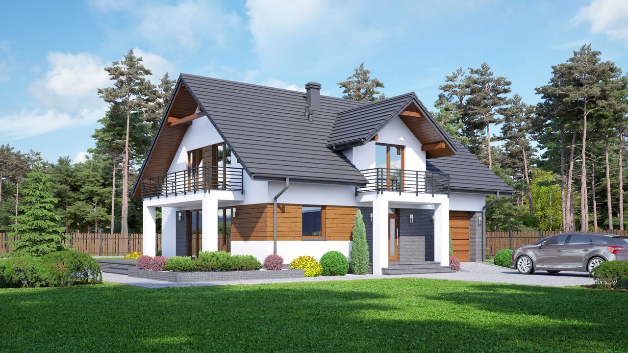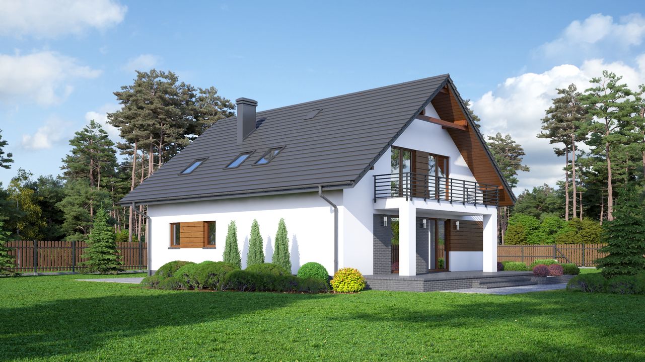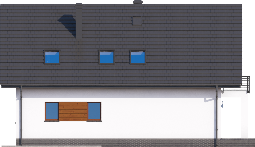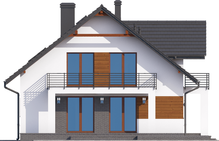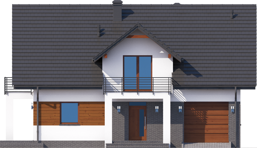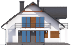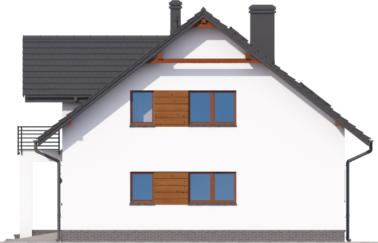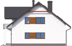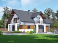 Graficzne opracowanie rzutów poglądowych widocznych na karcie projektu zostało wykonane przez Extradom.pl. Prezentowane przez Extradom.pl wizualizacje wykonane zostały przez autora projektu i należy poczytywać je jedynie za przykład i propozycję wykończenia, wizję architektoniczną autora projektu. Ostateczne wykończenie budynku może nastąpić na wiele sposobów. Szczegółowe rozwiązania zastosowane w oferowanej dokumentacji - w tym również ilość, lokalizacje i wygląd okien, drzwi, kominów - mogą w niewielkim stopniu różnić się od prezentowanej wizualizacji budynku.