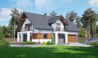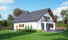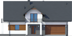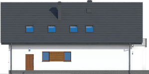 Graficzne opracowanie rzutów poglądowych widocznych na karcie projektu zostało wykonane przez Extradom.pl. Prezentowane przez Extradom.pl wizualizacje wykonane zostały przez autora projektu i należy poczytywać je jedynie za przykład i propozycję wykończenia, wizję architektoniczną autora projektu. Ostateczne wykończenie budynku może nastąpić na wiele sposobów. Szczegółowe rozwiązania zastosowane w oferowanej dokumentacji - w tym również ilość, lokalizacje i wygląd okien, drzwi, kominów - mogą w niewielkim stopniu różnić się od prezentowanej wizualizacji budynku.
