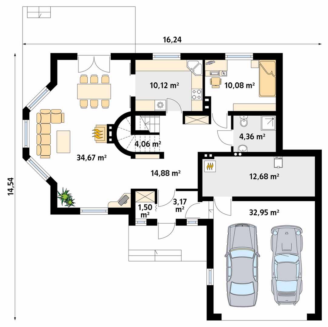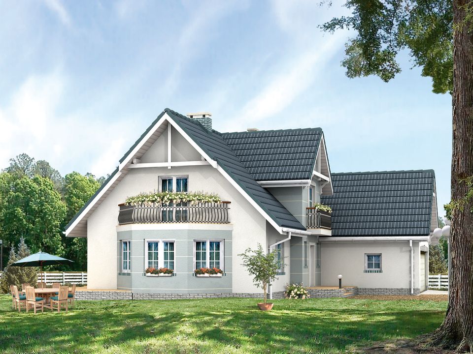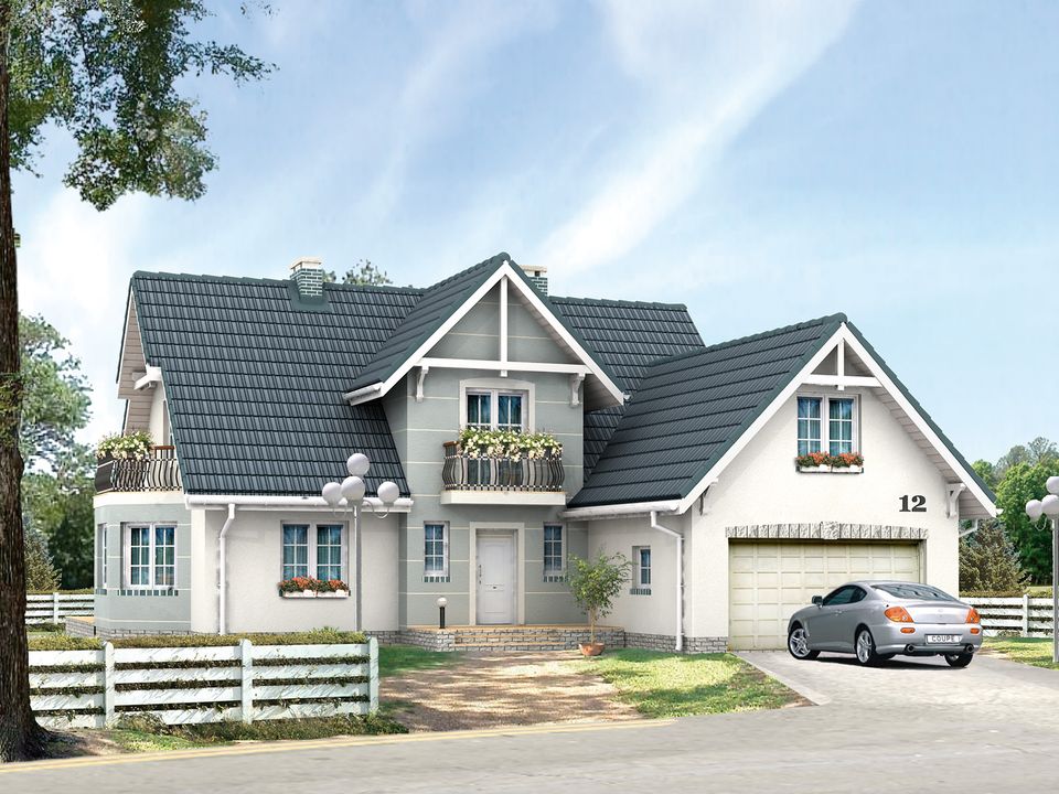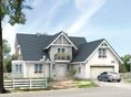 Graficzne opracowanie rzutów poglądowych widocznych na karcie projektu zostało wykonane przez Extradom.pl. Prezentowane przez Extradom.pl wizualizacje wykonane zostały przez autora projektu i należy poczytywać je jedynie za przykład i propozycję wykończenia, wizję architektoniczną autora projektu. Ostateczne wykończenie budynku może nastąpić na wiele sposobów. Szczegółowe rozwiązania zastosowane w oferowanej dokumentacji - w tym również ilość, lokalizacje i wygląd okien, drzwi, kominów - mogą w niewielkim stopniu różnić się od prezentowanej wizualizacji budynku.