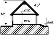 Ściany: 2-warstwowe - bloczek SILKA 24 cm + styropian. Stropy: żelbetowe, wylewane. Dach: dachówka ceramiczna CREATON, kąt nachylenia 45°. Ogrzewanie: gazowe, olejowe.