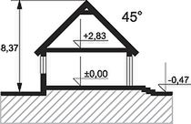 Ściany: 3-warstwowe - pustak ceramiczny + styropian. Stropy: żelbetowe, wylewane. Dach: dachówka ceramiczna CREATON, kąt nachylenia 45°. Ogrzewanie:.