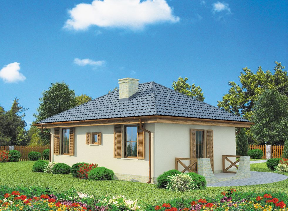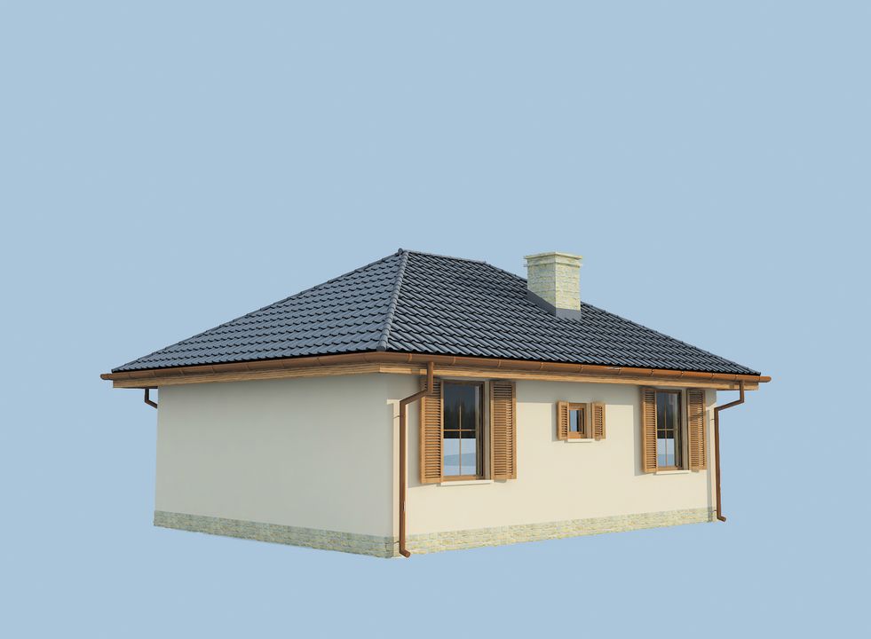 Graficzne opracowanie rzutów poglądowych widocznych na karcie projektu zostało wykonane przez Extradom.pl. Prezentowane przez Extradom.pl wizualizacje wykonane zostały przez autora projektu i należy poczytywać je jedynie za przykład i propozycję wykończenia, wizję architektoniczną autora projektu. Ostateczne wykończenie budynku może nastąpić na wiele sposobów. Szczegółowe rozwiązania zastosowane w oferowanej dokumentacji - w tym również ilość, lokalizacje i wygląd okien, drzwi, kominów - mogą w niewielkim stopniu różnić się od prezentowanej wizualizacji budynku.