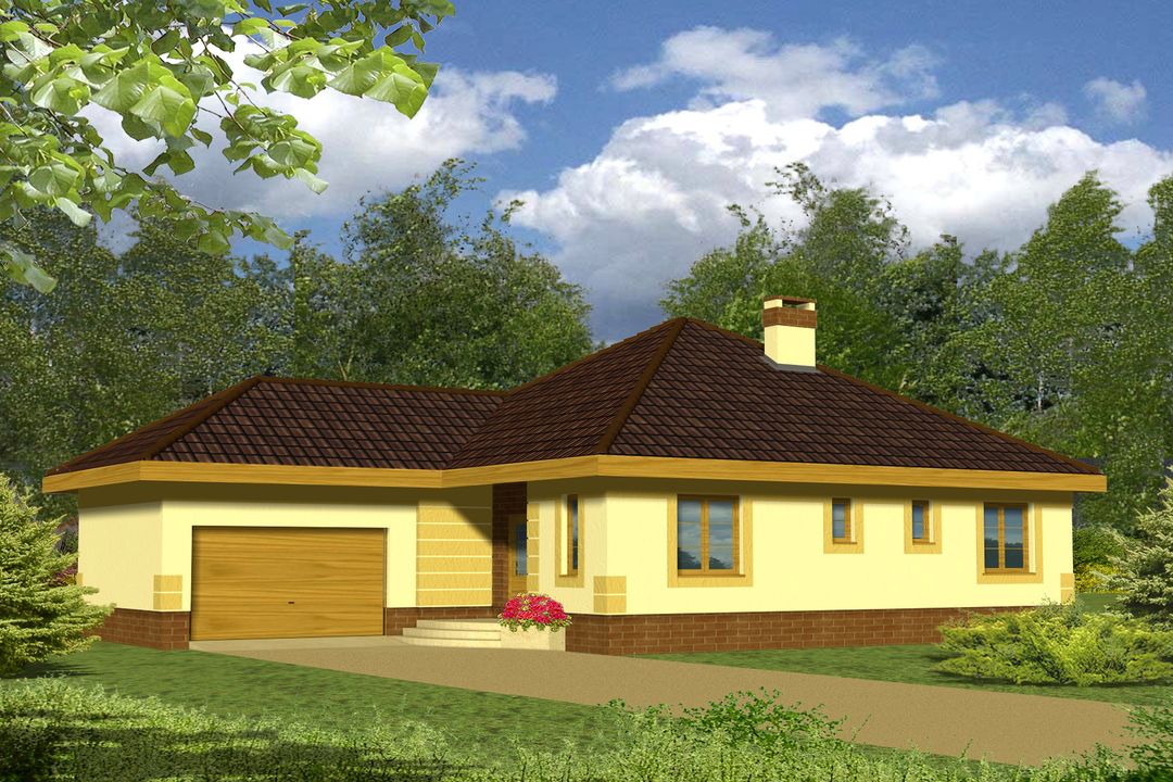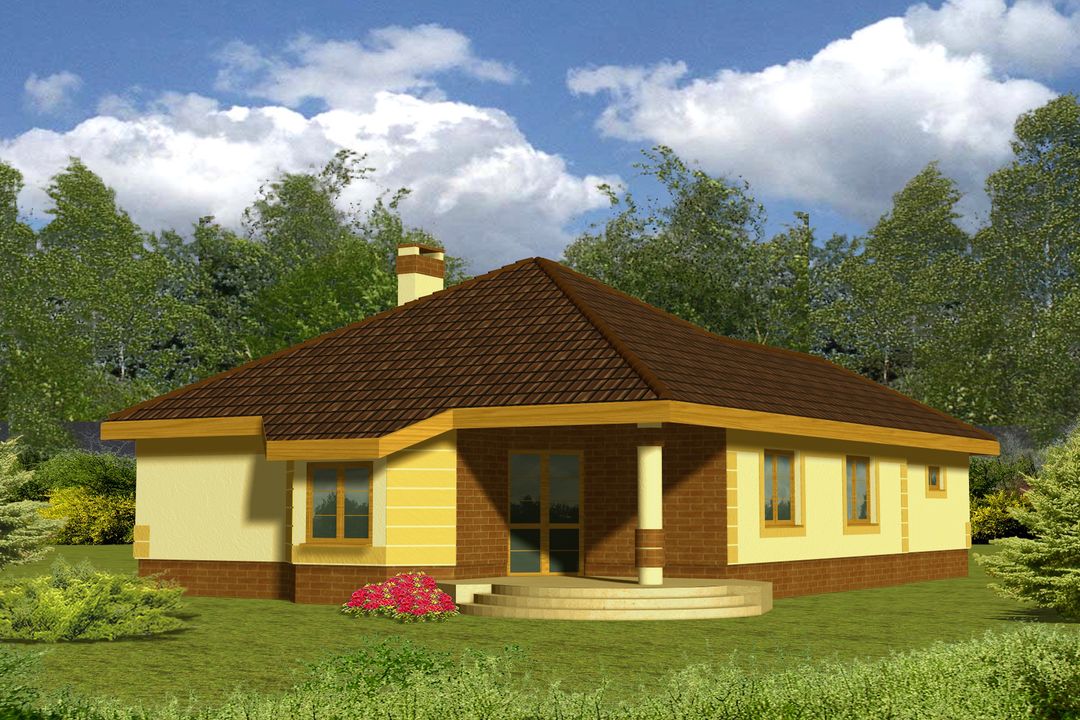 Graficzne opracowanie rzutów poglądowych widocznych na karcie projektu zostało wykonane przez Extradom.pl. Prezentowane przez Extradom.pl wizualizacje wykonane zostały przez autora projektu i należy poczytywać je jedynie za przykład i propozycję wykończenia, wizję architektoniczną autora projektu. Ostateczne wykończenie budynku może nastąpić na wiele sposobów. Szczegółowe rozwiązania zastosowane w oferowanej dokumentacji - w tym również ilość, lokalizacje i wygląd okien, drzwi, kominów - mogą w niewielkim stopniu różnić się od prezentowanej wizualizacji budynku.