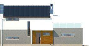 Graficzne opracowanie rzutów poglądowych widocznych na karcie projektu zostało wykonane przez Extradom.pl. Prezentowane przez Extradom.pl wizualizacje wykonane zostały przez autora projektu i należy poczytywać je jedynie za przykład i propozycję wykończenia, wizję architektoniczną autora projektu. Ostateczne wykończenie budynku może nastąpić na wiele sposobów. Szczegółowe rozwiązania zastosowane w oferowanej dokumentacji - w tym również ilość, lokalizacje i wygląd okien, drzwi, kominów - mogą w niewielkim stopniu różnić się od prezentowanej wizualizacji budynku.