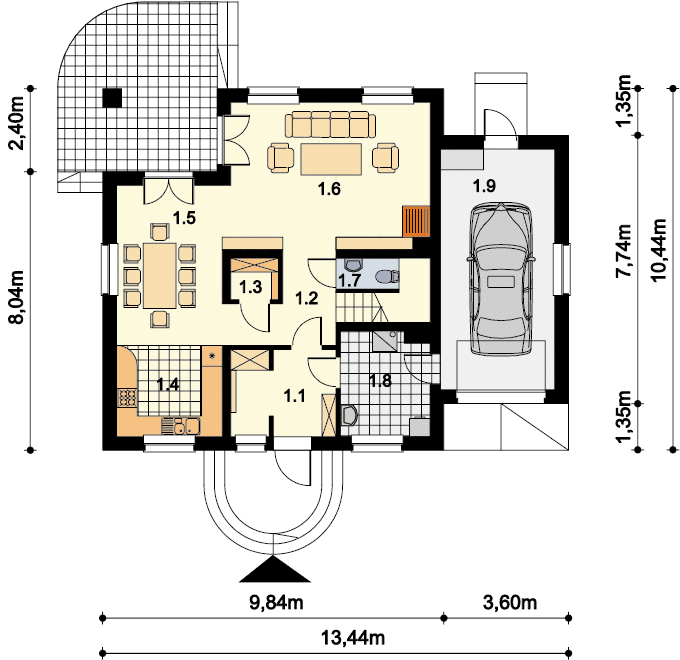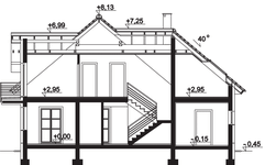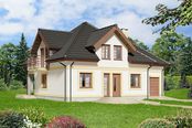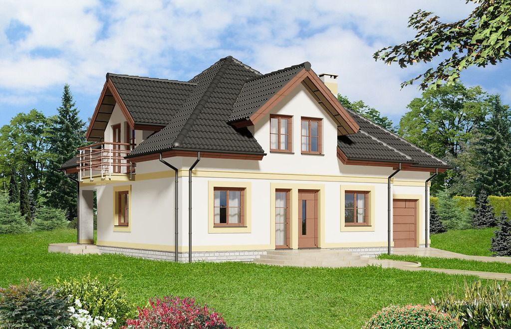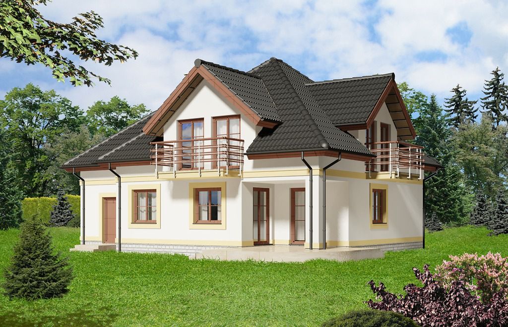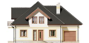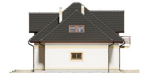 Graficzne opracowanie rzutów poglądowych widocznych na karcie projektu zostało wykonane przez Extradom.pl. Prezentowane przez Extradom.pl wizualizacje wykonane zostały przez autora projektu i należy poczytywać je jedynie za przykład i propozycję wykończenia, wizję architektoniczną autora projektu. Ostateczne wykończenie budynku może nastąpić na wiele sposobów. Szczegółowe rozwiązania zastosowane w oferowanej dokumentacji - w tym również ilość, lokalizacje i wygląd okien, drzwi, kominów - mogą w niewielkim stopniu różnić się od prezentowanej wizualizacji budynku.