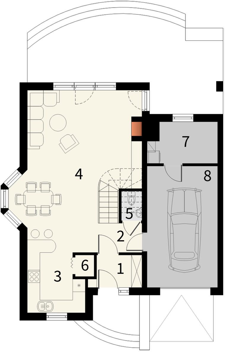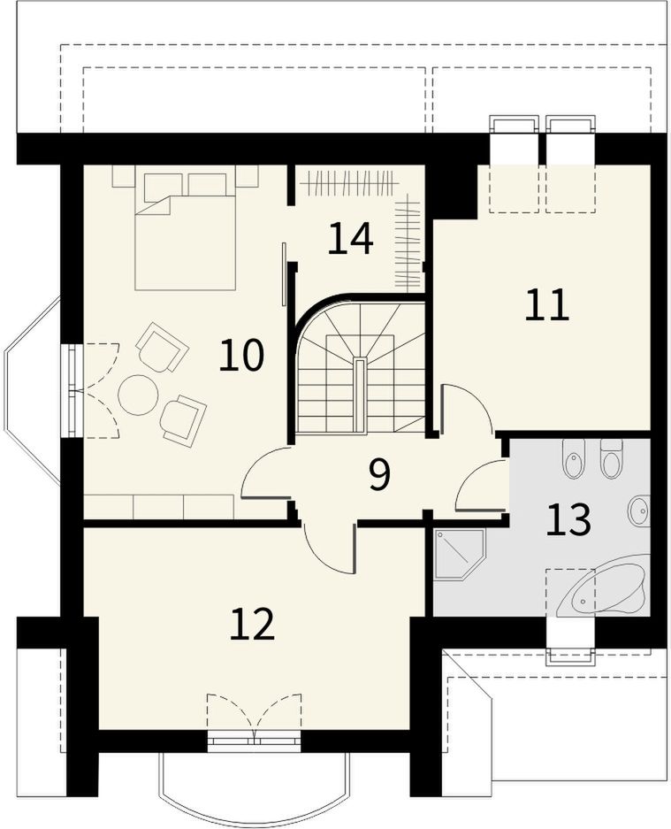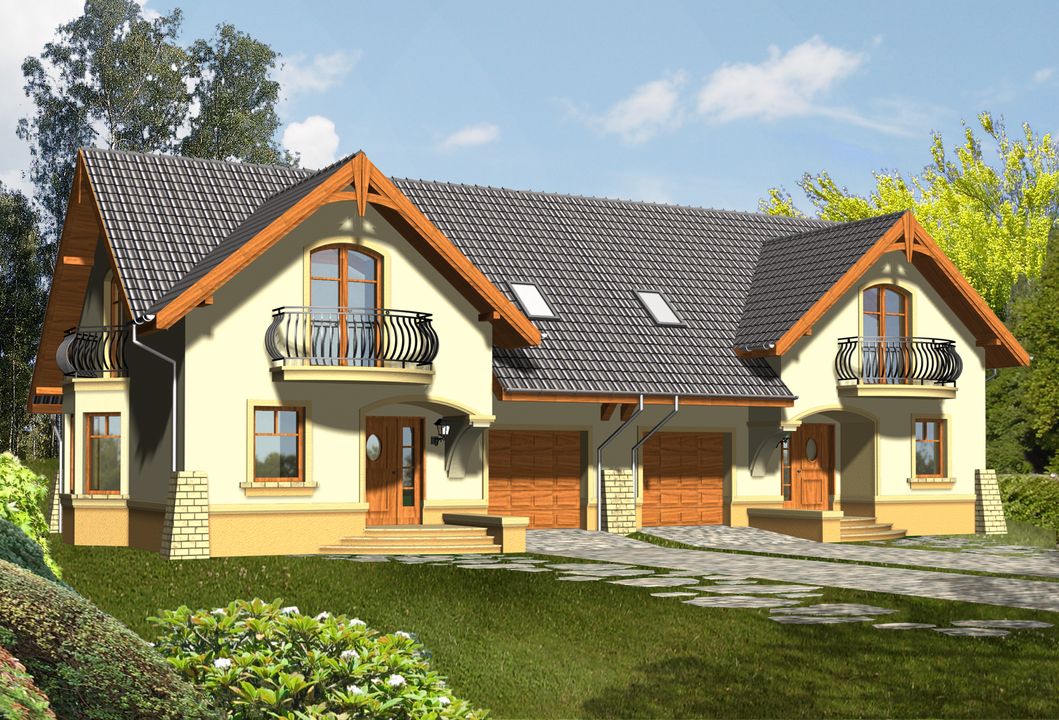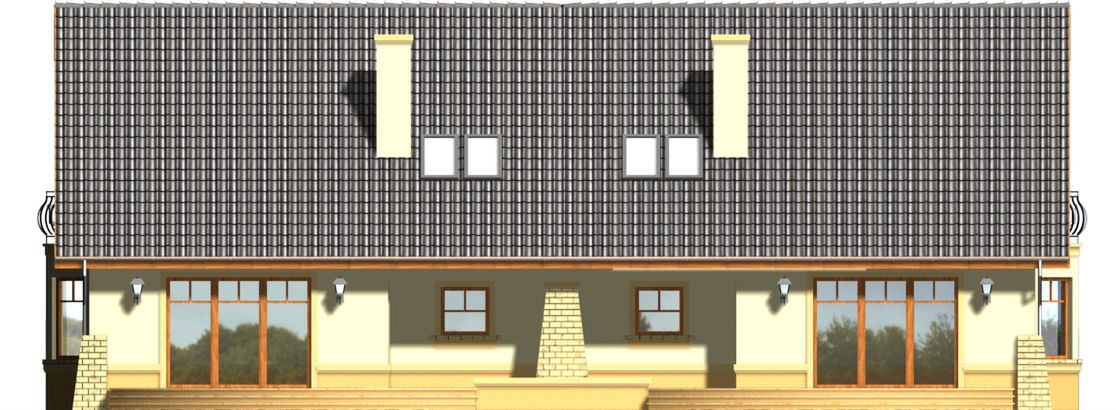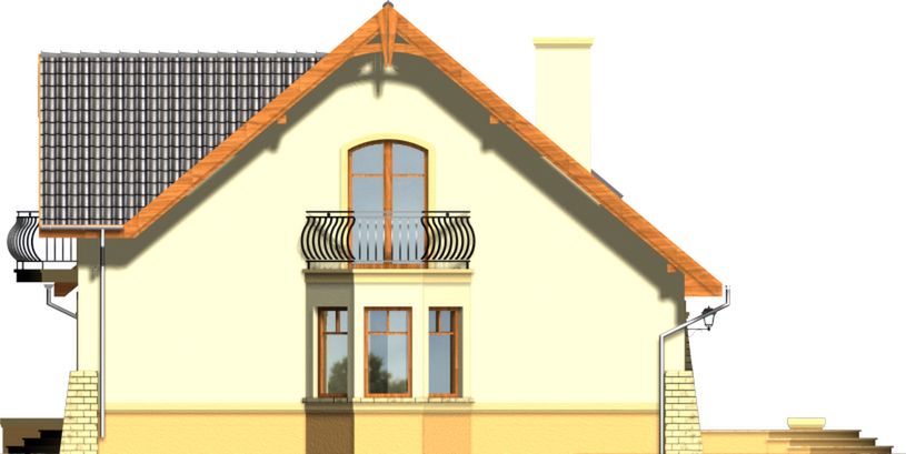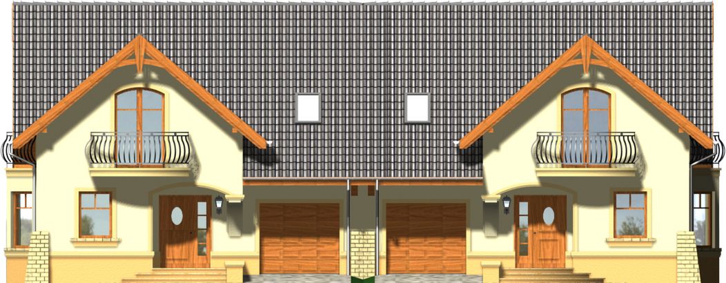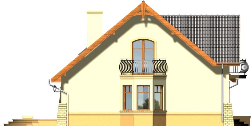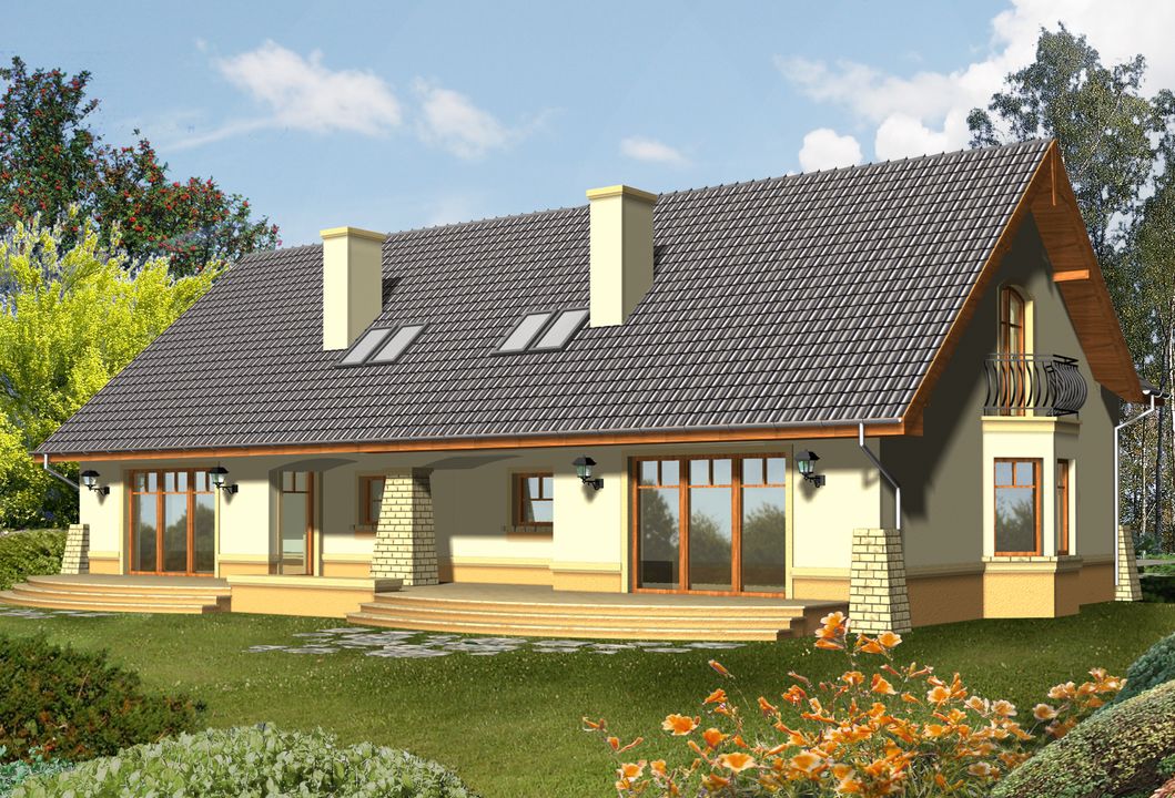 Graficzne opracowanie rzutów poglądowych widocznych na karcie projektu zostało wykonane przez Extradom.pl. Prezentowane przez Extradom.pl wizualizacje wykonane zostały przez autora projektu i należy poczytywać je jedynie za przykład i propozycję wykończenia, wizję architektoniczną autora projektu. Ostateczne wykończenie budynku może nastąpić na wiele sposobów. Szczegółowe rozwiązania zastosowane w oferowanej dokumentacji - w tym również ilość, lokalizacje i wygląd okien, drzwi, kominów - mogą w niewielkim stopniu różnić się od prezentowanej wizualizacji budynku.