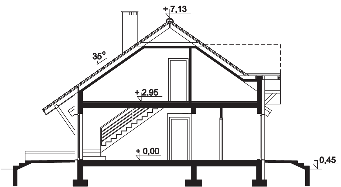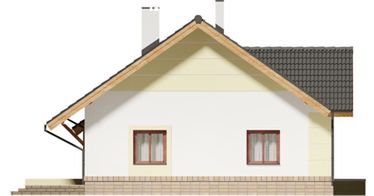 Graficzne opracowanie rzutów poglądowych widocznych na karcie projektu zostało wykonane przez Extradom.pl. Prezentowane przez Extradom.pl wizualizacje wykonane zostały przez autora projektu i należy poczytywać je jedynie za przykład i propozycję wykończenia, wizję architektoniczną autora projektu. Ostateczne wykończenie budynku może nastąpić na wiele sposobów. Szczegółowe rozwiązania zastosowane w oferowanej dokumentacji - w tym również ilość, lokalizacje i wygląd okien, drzwi, kominów - mogą w niewielkim stopniu różnić się od prezentowanej wizualizacji budynku.