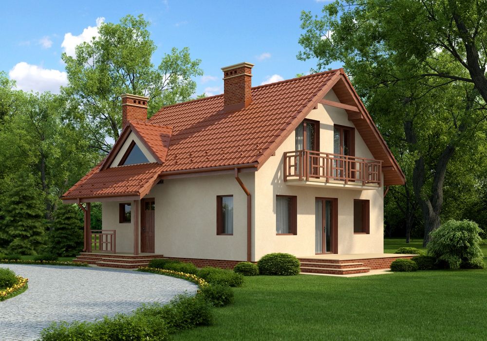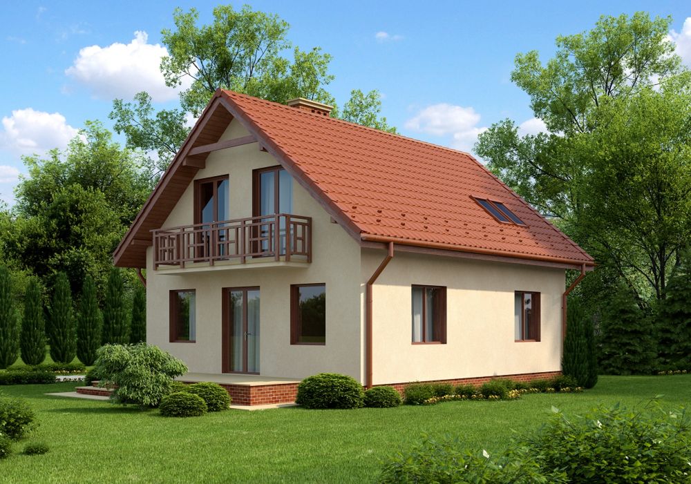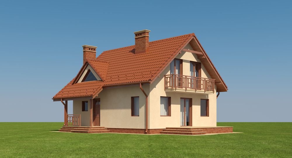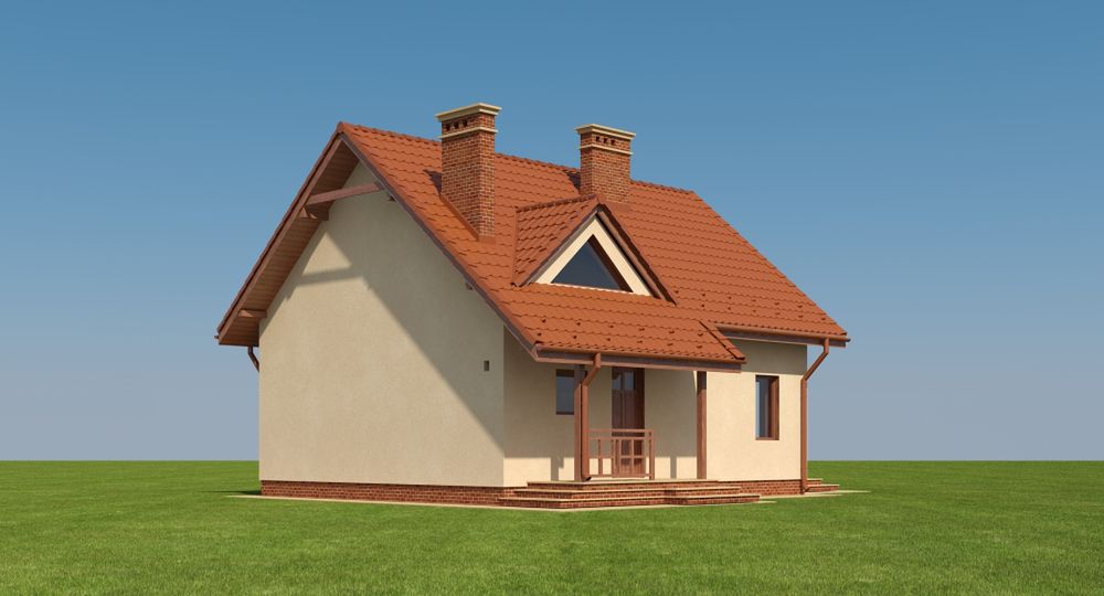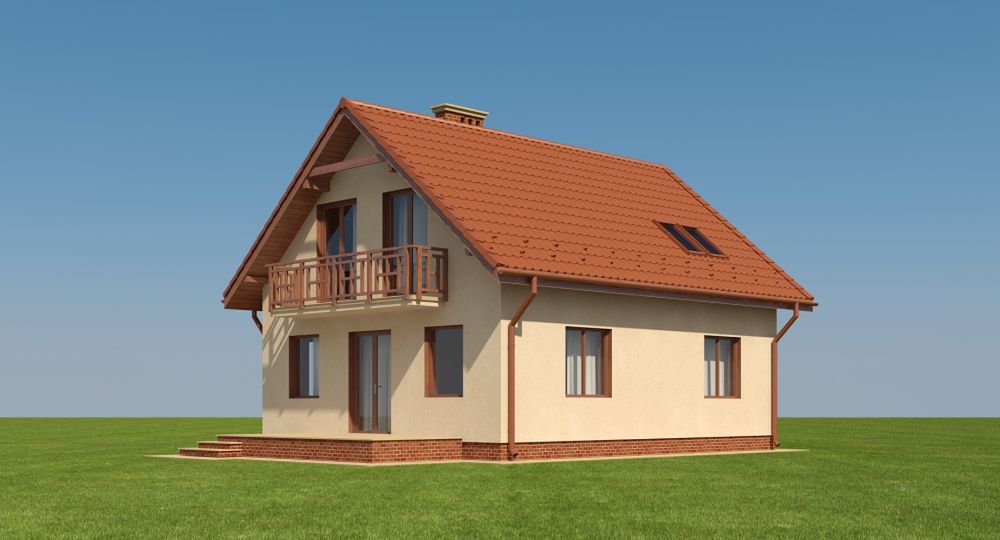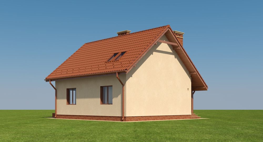 Graficzne opracowanie rzutów poglądowych widocznych na karcie projektu zostało wykonane przez Extradom.pl. Prezentowane przez Extradom.pl wizualizacje wykonane zostały przez autora projektu i należy poczytywać je jedynie za przykład i propozycję wykończenia, wizję architektoniczną autora projektu. Ostateczne wykończenie budynku może nastąpić na wiele sposobów. Szczegółowe rozwiązania zastosowane w oferowanej dokumentacji - w tym również ilość, lokalizacje i wygląd okien, drzwi, kominów - mogą w niewielkim stopniu różnić się od prezentowanej wizualizacji budynku.