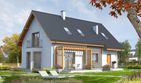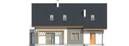 Graficzne opracowanie rzutów poglądowych widocznych na karcie projektu zostało wykonane przez Extradom.pl. Prezentowane przez Extradom.pl wizualizacje wykonane zostały przez autora projektu i należy poczytywać je jedynie za przykład i propozycję wykończenia, wizję architektoniczną autora projektu. Ostateczne wykończenie budynku może nastąpić na wiele sposobów. Szczegółowe rozwiązania zastosowane w oferowanej dokumentacji - w tym również ilość, lokalizacje i wygląd okien, drzwi, kominów - mogą w niewielkim stopniu różnić się od prezentowanej wizualizacji budynku.