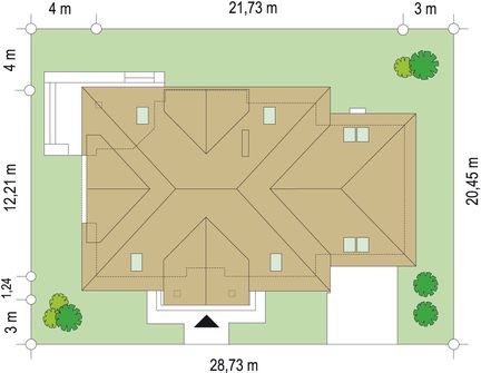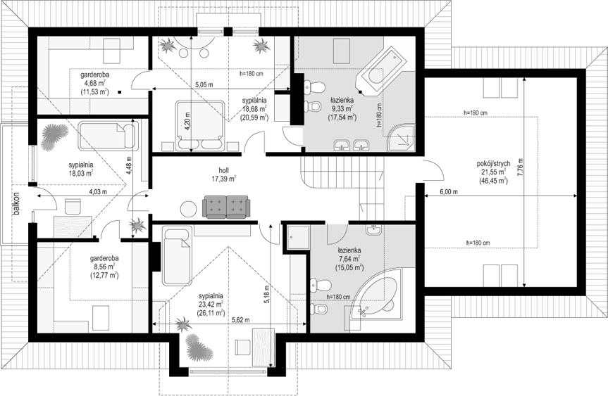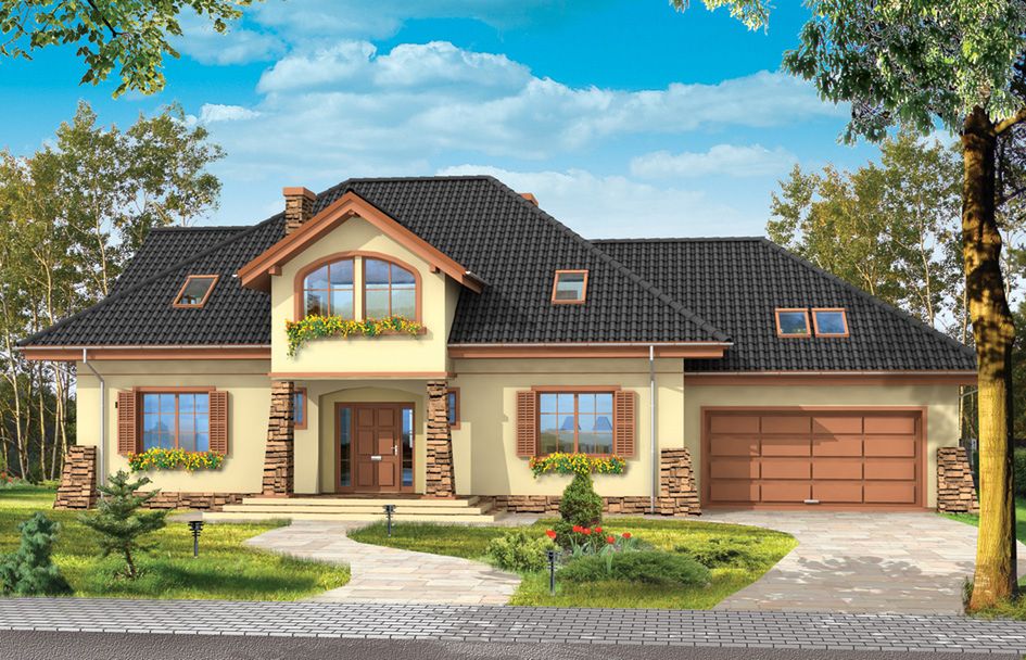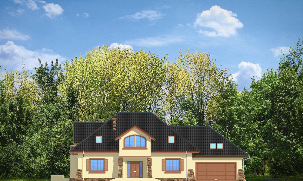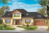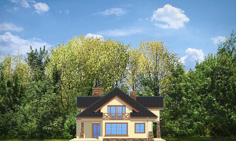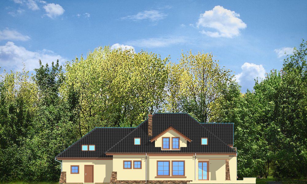 Graficzne opracowanie rzutów poglądowych widocznych na karcie projektu zostało wykonane przez Extradom.pl. Prezentowane przez Extradom.pl wizualizacje wykonane zostały przez autora projektu i należy poczytywać je jedynie za przykład i propozycję wykończenia, wizję architektoniczną autora projektu. Ostateczne wykończenie budynku może nastąpić na wiele sposobów. Szczegółowe rozwiązania zastosowane w oferowanej dokumentacji - w tym również ilość, lokalizacje i wygląd okien, drzwi, kominów - mogą w niewielkim stopniu różnić się od prezentowanej wizualizacji budynku.