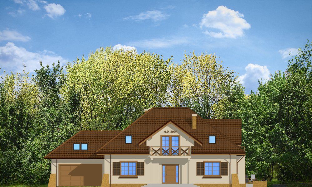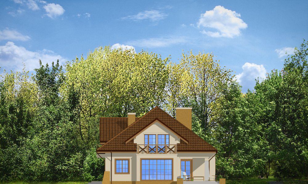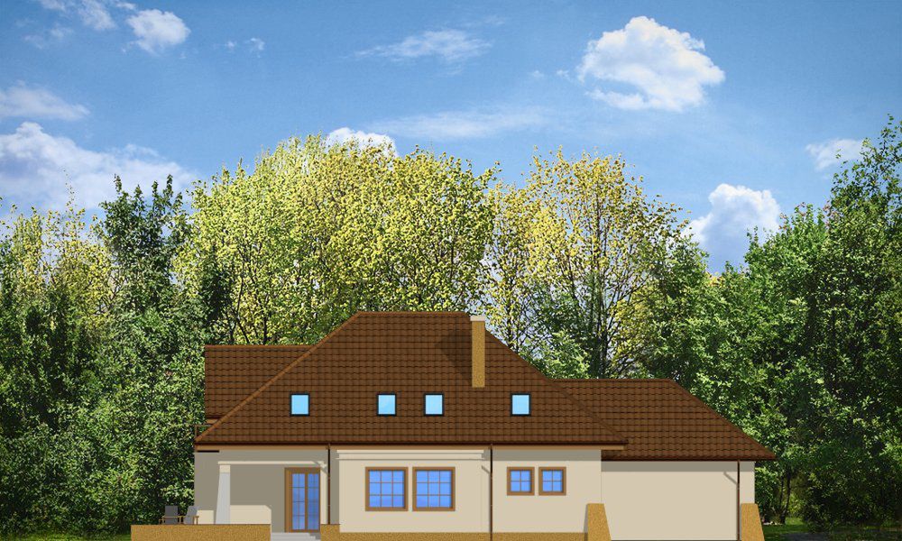 Graficzne opracowanie rzutów poglądowych widocznych na karcie projektu zostało wykonane przez Extradom.pl. Prezentowane przez Extradom.pl wizualizacje wykonane zostały przez autora projektu i należy poczytywać je jedynie za przykład i propozycję wykończenia, wizję architektoniczną autora projektu. Ostateczne wykończenie budynku może nastąpić na wiele sposobów. Szczegółowe rozwiązania zastosowane w oferowanej dokumentacji - w tym również ilość, lokalizacje i wygląd okien, drzwi, kominów - mogą w niewielkim stopniu różnić się od prezentowanej wizualizacji budynku.