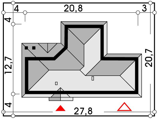 Strop: gęstożebrowy Teriva I. Ściany zewnętrzne: gazobeton 24cm + styropian Termonium Fasada 12cm. Pokrycie dachowe: dachówka ceramiczna. Ogrzewanie: gaz.