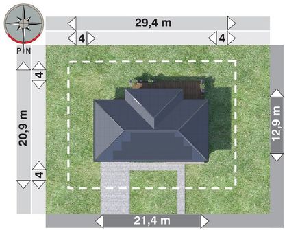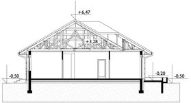 Graficzne opracowanie rzutów poglądowych widocznych na karcie projektu zostało wykonane przez Extradom.pl. Prezentowane przez Extradom.pl wizualizacje wykonane zostały przez autora projektu i należy poczytywać je jedynie za przykład i propozycję wykończenia, wizję architektoniczną autora projektu. Ostateczne wykończenie budynku może nastąpić na wiele sposobów. Szczegółowe rozwiązania zastosowane w oferowanej dokumentacji - w tym również ilość, lokalizacje i wygląd okien, drzwi, kominów - mogą w niewielkim stopniu różnić się od prezentowanej wizualizacji budynku.