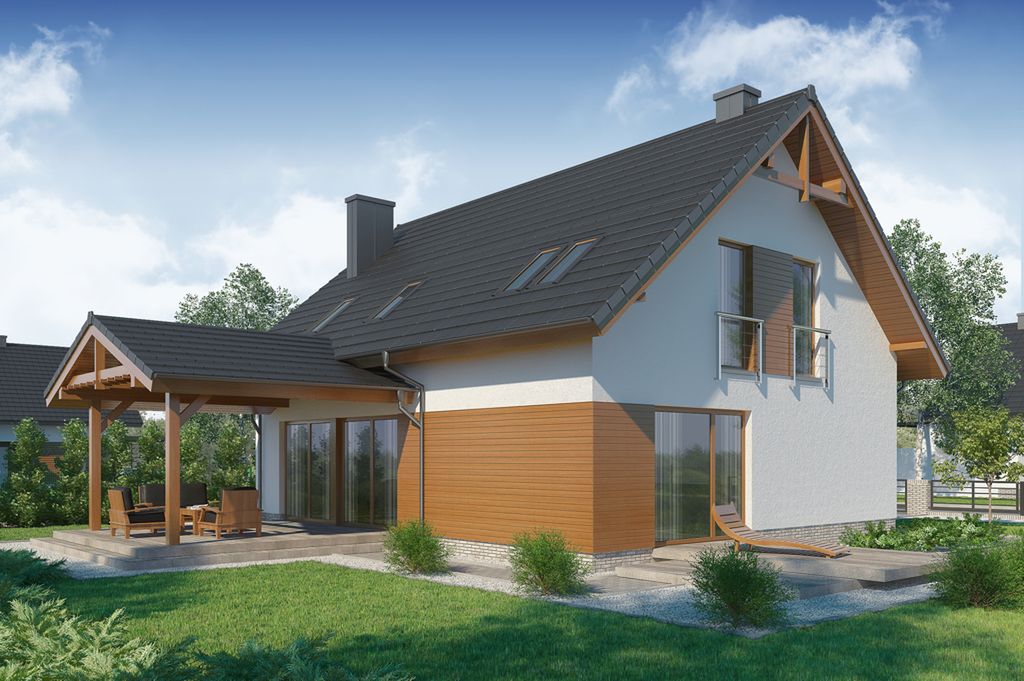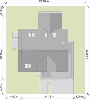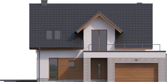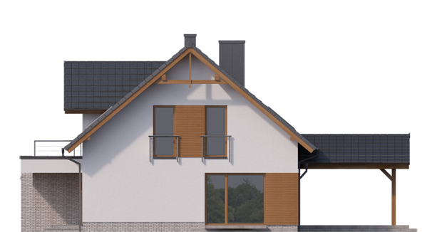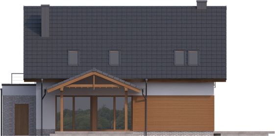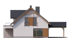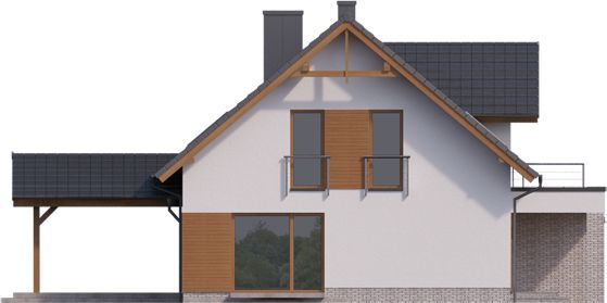 Graficzne opracowanie rzutów poglądowych widocznych na karcie projektu zostało wykonane przez Extradom.pl. Prezentowane przez Extradom.pl wizualizacje wykonane zostały przez autora projektu i należy poczytywać je jedynie za przykład i propozycję wykończenia, wizję architektoniczną autora projektu. Ostateczne wykończenie budynku może nastąpić na wiele sposobów. Szczegółowe rozwiązania zastosowane w oferowanej dokumentacji - w tym również ilość, lokalizacje i wygląd okien, drzwi, kominów - mogą w niewielkim stopniu różnić się od prezentowanej wizualizacji budynku.