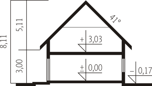 Dom zaprojektowano w technologii murowej ze stropem gęstożebrowym. Dach o konstrukcji drewnianej pokryto dachówką cementową lub ceramiczną. Okna połaciowe. Schody wewnętrzne drewniane.