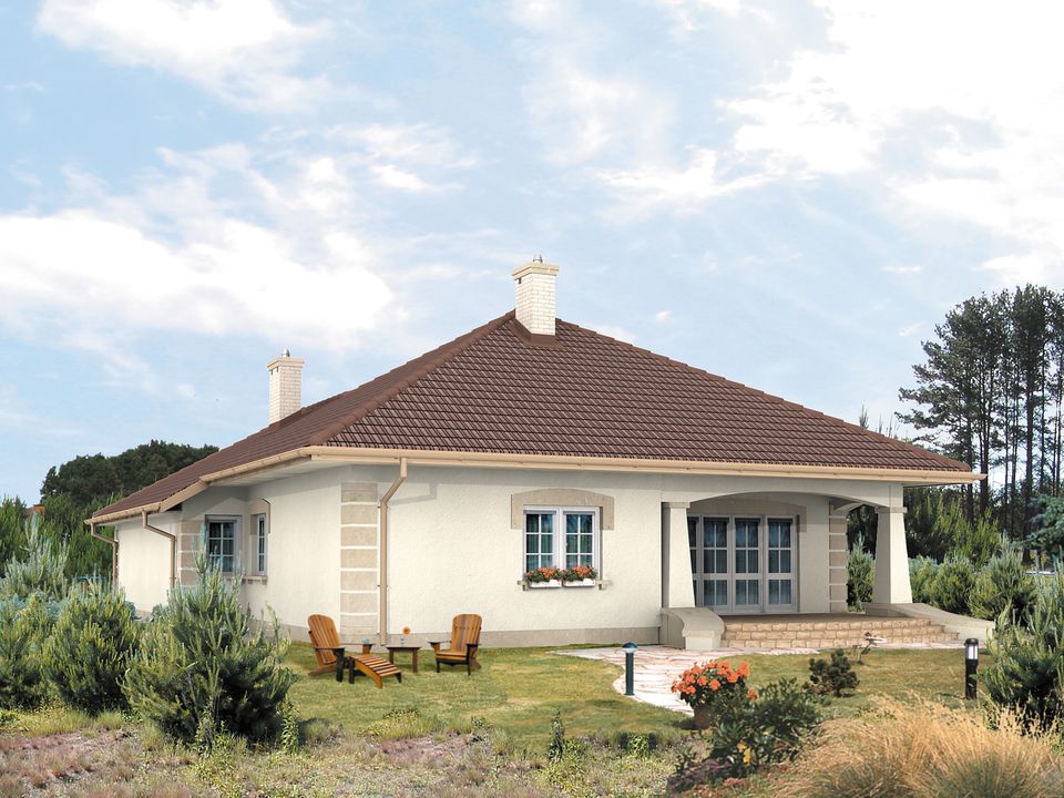Dach: dachówka, kąt nachylenia 30°. Stropy: żelbetowe, wylewane. Ściany: 2-warstwowe - pustak ceramiczny + wełna mineralna. Ogrzewanie: gazowe.