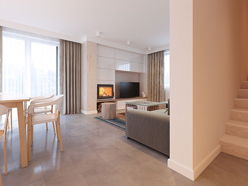 Graficzne opracowanie rzutów poglądowych widocznych na karcie projektu zostało wykonane przez Extradom.pl. Prezentowane przez Extradom.pl wizualizacje wykonane zostały przez autora projektu i należy poczytywać je jedynie za przykład i propozycję wykończenia, wizję architektoniczną autora projektu. Ostateczne wykończenie budynku może nastąpić na wiele sposobów. Szczegółowe rozwiązania zastosowane w oferowanej dokumentacji - w tym również ilość, lokalizacje i wygląd okien, drzwi, kominów - mogą w niewielkim stopniu różnić się od prezentowanej wizualizacji budynku.