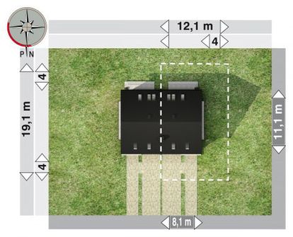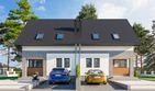 Graficzne opracowanie rzutów poglądowych widocznych na karcie projektu zostało wykonane przez Extradom.pl. Prezentowane przez Extradom.pl wizualizacje wykonane zostały przez autora projektu i należy poczytywać je jedynie za przykład i propozycję wykończenia, wizję architektoniczną autora projektu. Ostateczne wykończenie budynku może nastąpić na wiele sposobów. Szczegółowe rozwiązania zastosowane w oferowanej dokumentacji - w tym również ilość, lokalizacje i wygląd okien, drzwi, kominów - mogą w niewielkim stopniu różnić się od prezentowanej wizualizacji budynku.