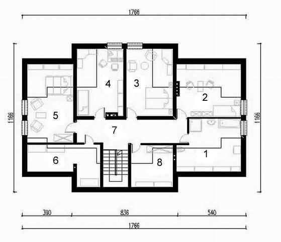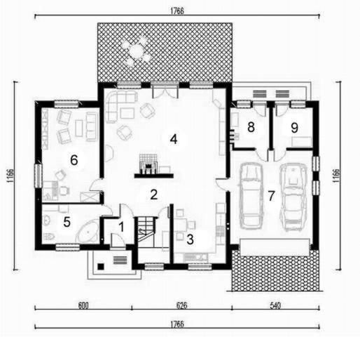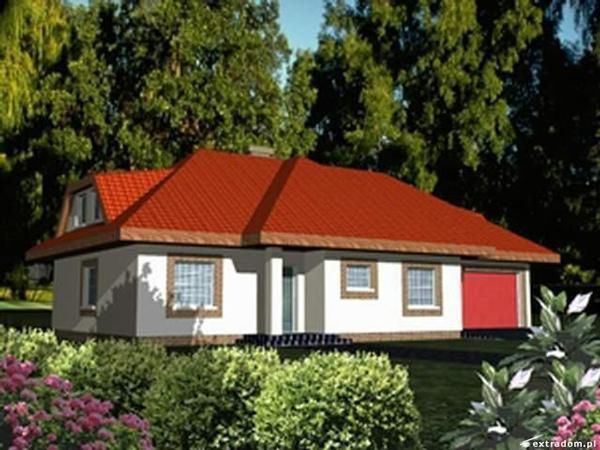 Graficzne opracowanie rzutów poglądowych widocznych na karcie projektu zostało wykonane przez Extradom.pl. Prezentowane przez Extradom.pl wizualizacje wykonane zostały przez autora projektu i należy poczytywać je jedynie za przykład i propozycję wykończenia, wizję architektoniczną autora projektu. Ostateczne wykończenie budynku może nastąpić na wiele sposobów. Szczegółowe rozwiązania zastosowane w oferowanej dokumentacji - w tym również ilość, lokalizacje i wygląd okien, drzwi, kominów - mogą w niewielkim stopniu różnić się od prezentowanej wizualizacji budynku.