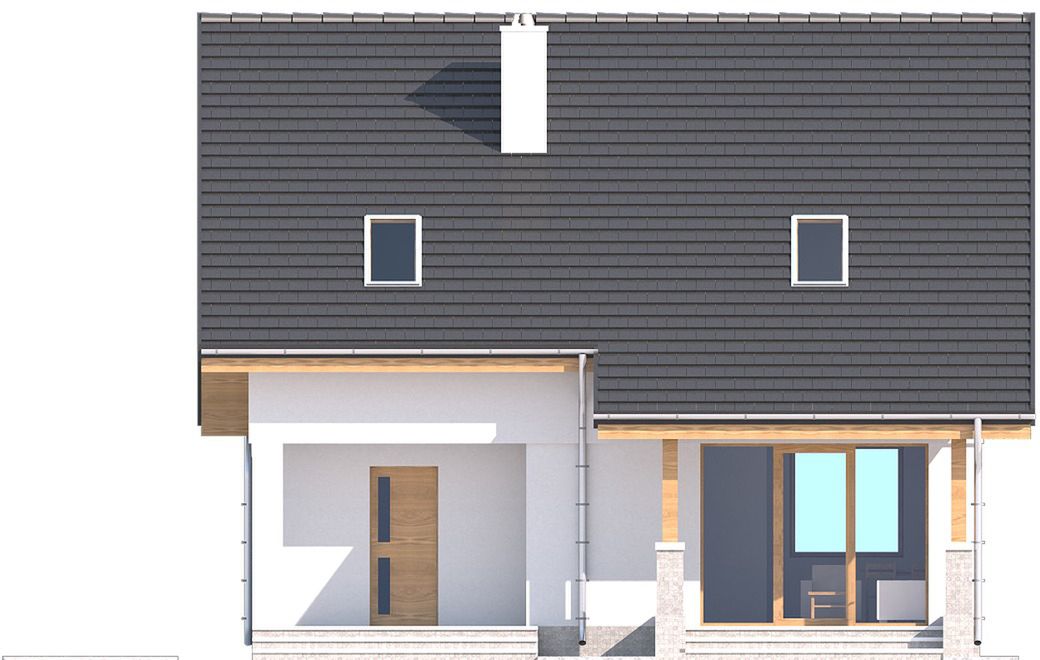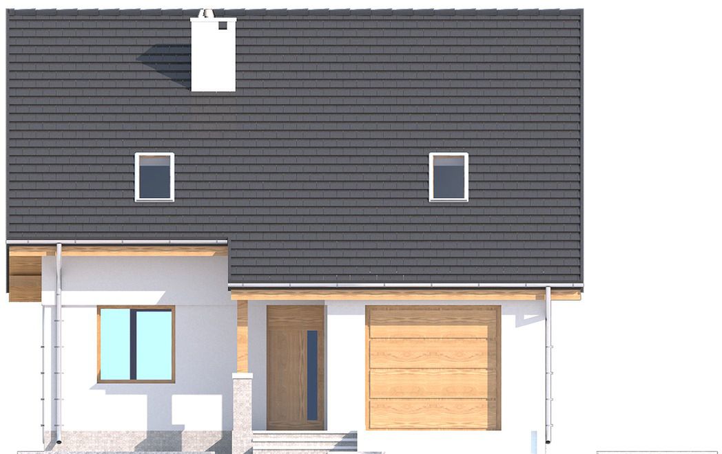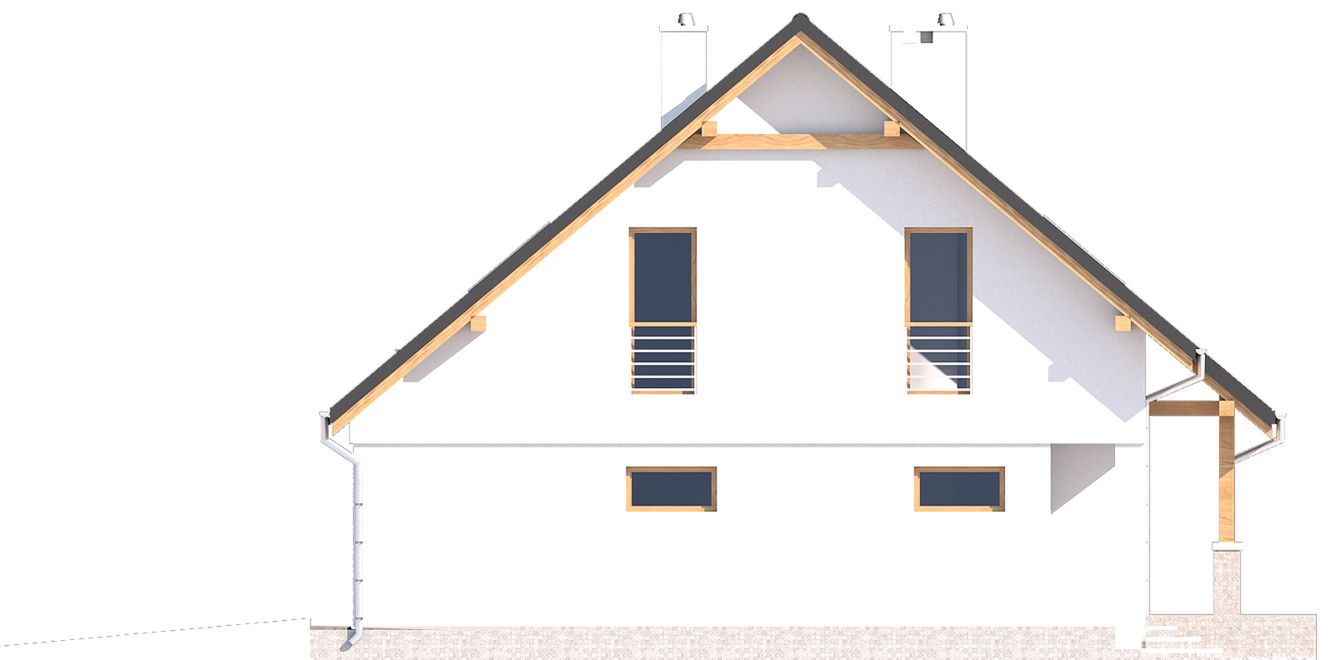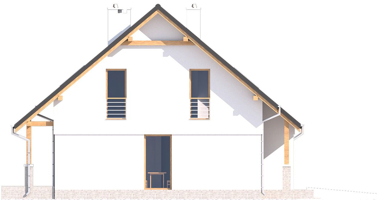 Graficzne opracowanie rzutów poglądowych widocznych na karcie projektu zostało wykonane przez Extradom.pl. Prezentowane przez Extradom.pl wizualizacje wykonane zostały przez autora projektu i należy poczytywać je jedynie za przykład i propozycję wykończenia, wizję architektoniczną autora projektu. Ostateczne wykończenie budynku może nastąpić na wiele sposobów. Szczegółowe rozwiązania zastosowane w oferowanej dokumentacji - w tym również ilość, lokalizacje i wygląd okien, drzwi, kominów - mogą w niewielkim stopniu różnić się od prezentowanej wizualizacji budynku.