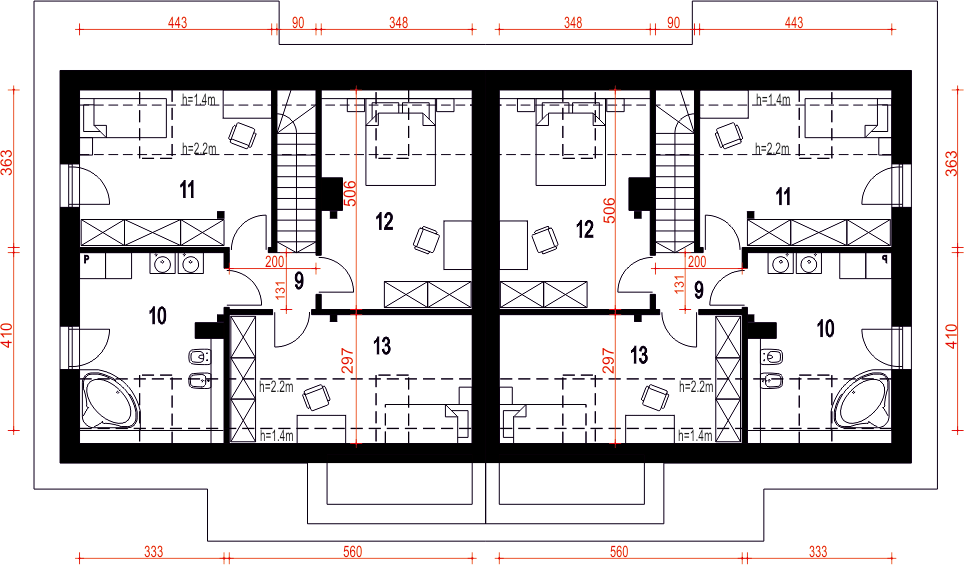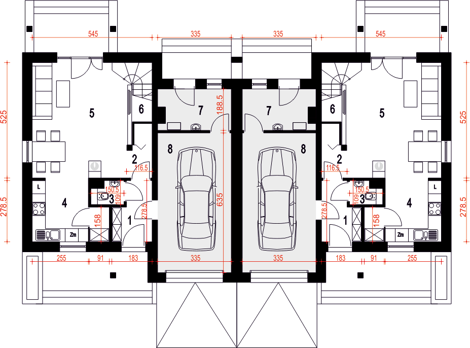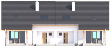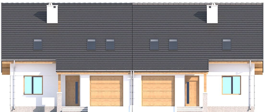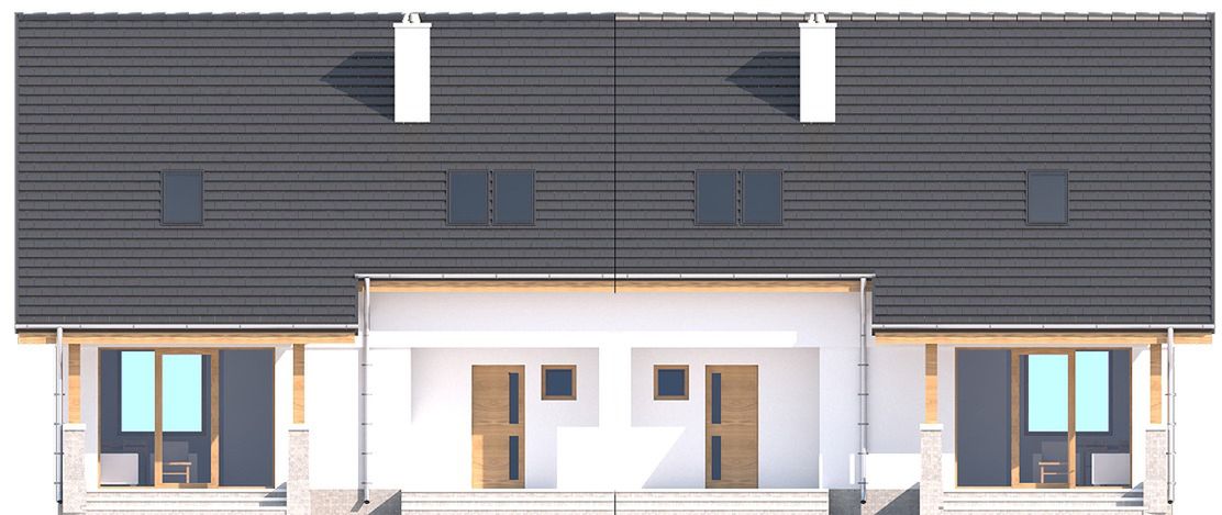 Projekt wymaga aktualizacji. Przy zakupie projektu należy zapłacić 50% zaliczki. Zaliczka jest bezzwrotna w przypadku zwrotu lub rezygnacji z zamówienia. Budynek dwulokalowy posadowiony na wspólnym fundamencie. Jeśli planujesz budowę na osobnych działkach zamów pojedyncze segmenty: podstawa + lustro.