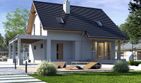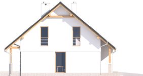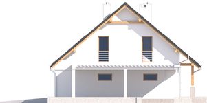 Graficzne opracowanie rzutów poglądowych widocznych na karcie projektu zostało wykonane przez Extradom.pl. Prezentowane przez Extradom.pl wizualizacje wykonane zostały przez autora projektu i należy poczytywać je jedynie za przykład i propozycję wykończenia, wizję architektoniczną autora projektu. Ostateczne wykończenie budynku może nastąpić na wiele sposobów. Szczegółowe rozwiązania zastosowane w oferowanej dokumentacji - w tym również ilość, lokalizacje i wygląd okien, drzwi, kominów - mogą w niewielkim stopniu różnić się od prezentowanej wizualizacji budynku.