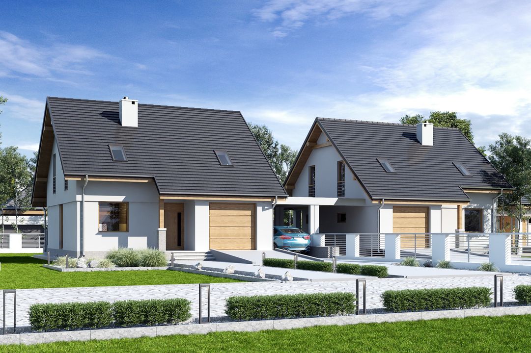 Biała z garażem i wiatą bliźniak [A1-BL] WRF1995