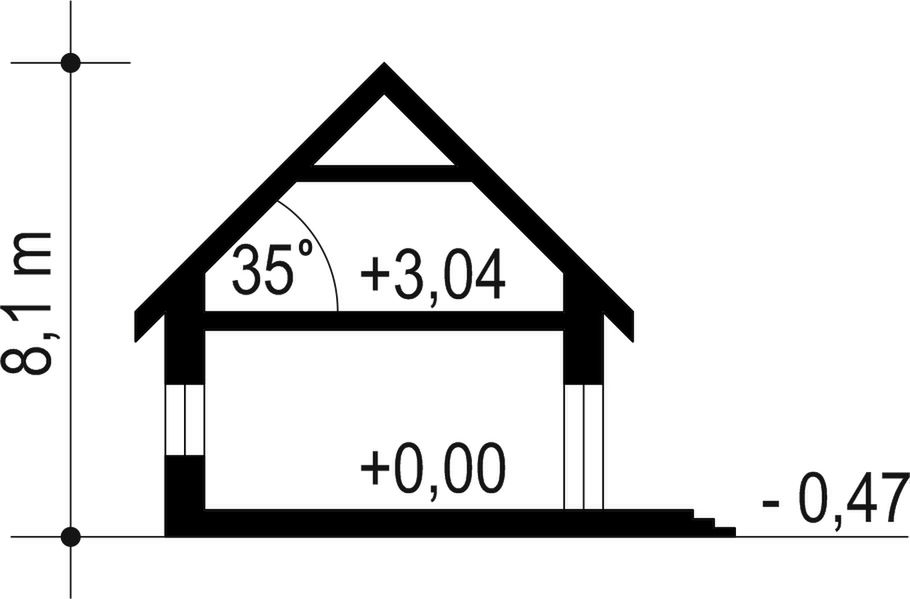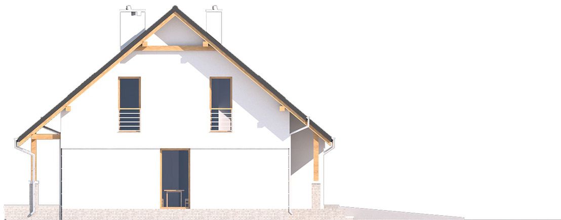 Graficzne opracowanie rzutów poglądowych widocznych na karcie projektu zostało wykonane przez Extradom.pl. Prezentowane przez Extradom.pl wizualizacje wykonane zostały przez autora projektu i należy poczytywać je jedynie za przykład i propozycję wykończenia, wizję architektoniczną autora projektu. Ostateczne wykończenie budynku może nastąpić na wiele sposobów. Szczegółowe rozwiązania zastosowane w oferowanej dokumentacji - w tym również ilość, lokalizacje i wygląd okien, drzwi, kominów - mogą w niewielkim stopniu różnić się od prezentowanej wizualizacji budynku.