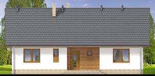 Graficzne opracowanie rzutów poglądowych widocznych na karcie projektu zostało wykonane przez Extradom.pl. Prezentowane przez Extradom.pl wizualizacje wykonane zostały przez autora projektu i należy poczytywać je jedynie za przykład i propozycję wykończenia, wizję architektoniczną autora projektu. Ostateczne wykończenie budynku może nastąpić na wiele sposobów. Szczegółowe rozwiązania zastosowane w oferowanej dokumentacji - w tym również ilość, lokalizacje i wygląd okien, drzwi, kominów - mogą w niewielkim stopniu różnić się od prezentowanej wizualizacji budynku.