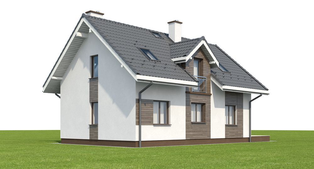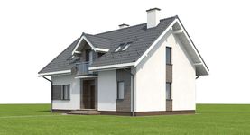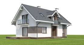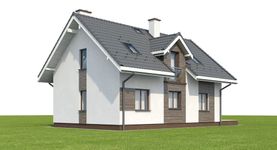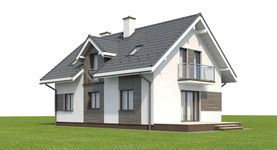 Graficzne opracowanie rzutów poglądowych widocznych na karcie projektu zostało wykonane przez Extradom.pl. Prezentowane przez Extradom.pl wizualizacje wykonane zostały przez autora projektu i należy poczytywać je jedynie za przykład i propozycję wykończenia, wizję architektoniczną autora projektu. Ostateczne wykończenie budynku może nastąpić na wiele sposobów. Szczegółowe rozwiązania zastosowane w oferowanej dokumentacji - w tym również ilość, lokalizacje i wygląd okien, drzwi, kominów - mogą w niewielkim stopniu różnić się od prezentowanej wizualizacji budynku.