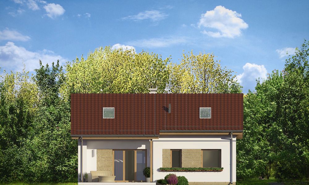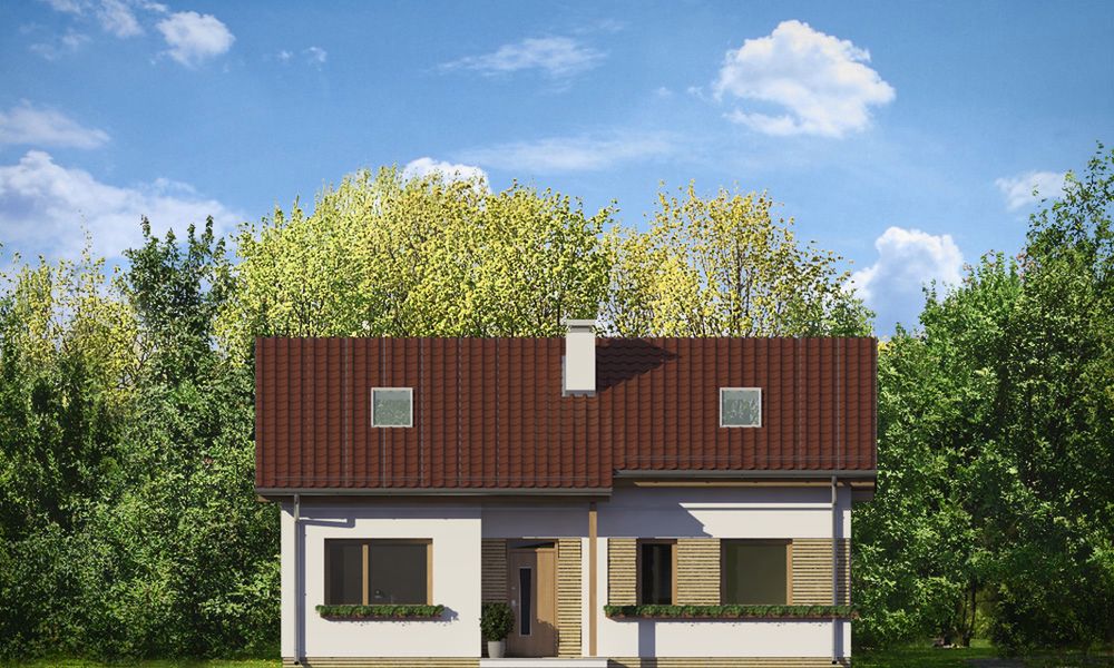 Graficzne opracowanie rzutów poglądowych widocznych na karcie projektu zostało wykonane przez Extradom.pl. Prezentowane przez Extradom.pl wizualizacje wykonane zostały przez autora projektu i należy poczytywać je jedynie za przykład i propozycję wykończenia, wizję architektoniczną autora projektu. Ostateczne wykończenie budynku może nastąpić na wiele sposobów. Szczegółowe rozwiązania zastosowane w oferowanej dokumentacji - w tym również ilość, lokalizacje i wygląd okien, drzwi, kominów - mogą w niewielkim stopniu różnić się od prezentowanej wizualizacji budynku.