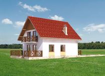 Graficzne opracowanie rzutów poglądowych widocznych na karcie projektu zostało wykonane przez Extradom.pl. Prezentowane przez Extradom.pl wizualizacje wykonane zostały przez autora projektu i należy poczytywać je jedynie za przykład i propozycję wykończenia, wizję architektoniczną autora projektu. Ostateczne wykończenie budynku może nastąpić na wiele sposobów. Szczegółowe rozwiązania zastosowane w oferowanej dokumentacji - w tym również ilość, lokalizacje i wygląd okien, drzwi, kominów - mogą w niewielkim stopniu różnić się od prezentowanej wizualizacji budynku.