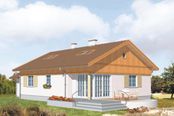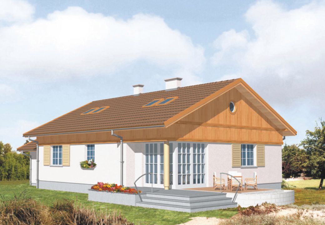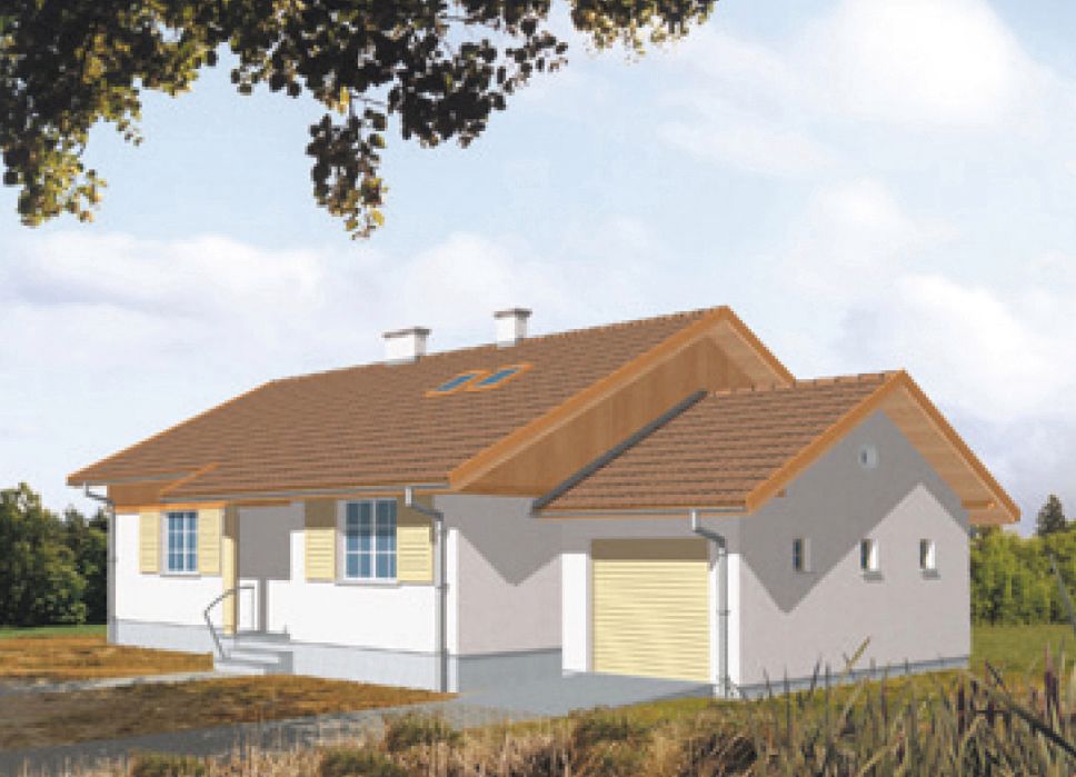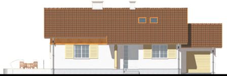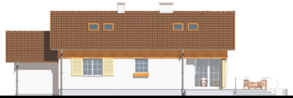 Graficzne opracowanie rzutów poglądowych widocznych na karcie projektu zostało wykonane przez Extradom.pl. Prezentowane przez Extradom.pl wizualizacje wykonane zostały przez autora projektu i należy poczytywać je jedynie za przykład i propozycję wykończenia, wizję architektoniczną autora projektu. Ostateczne wykończenie budynku może nastąpić na wiele sposobów. Szczegółowe rozwiązania zastosowane w oferowanej dokumentacji - w tym również ilość, lokalizacje i wygląd okien, drzwi, kominów - mogą w niewielkim stopniu różnić się od prezentowanej wizualizacji budynku.