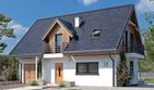 Graficzne opracowanie rzutów poglądowych widocznych na karcie projektu zostało wykonane przez Extradom.pl. Prezentowane przez Extradom.pl wizualizacje wykonane zostały przez autora projektu i należy poczytywać je jedynie za przykład i propozycję wykończenia, wizję architektoniczną autora projektu. Ostateczne wykończenie budynku może nastąpić na wiele sposobów. Szczegółowe rozwiązania zastosowane w oferowanej dokumentacji - w tym również ilość, lokalizacje i wygląd okien, drzwi, kominów - mogą w niewielkim stopniu różnić się od prezentowanej wizualizacji budynku.