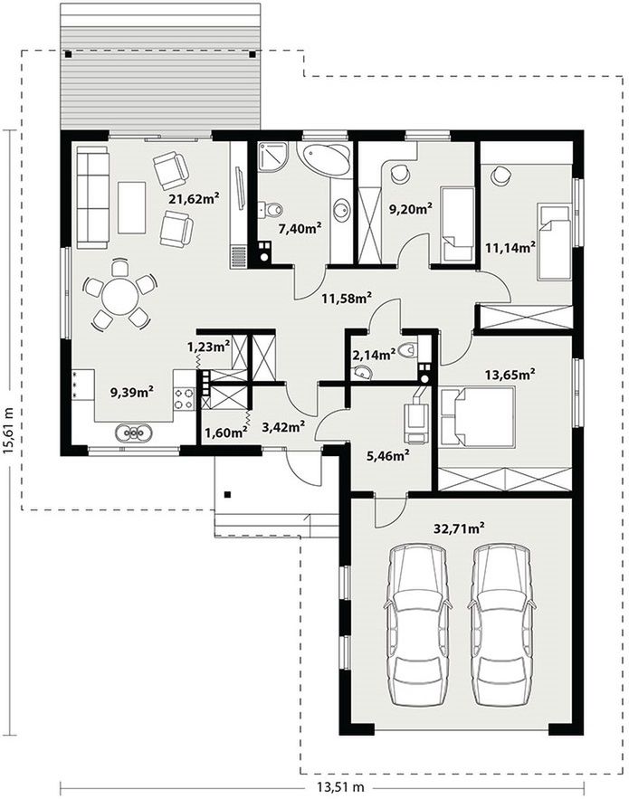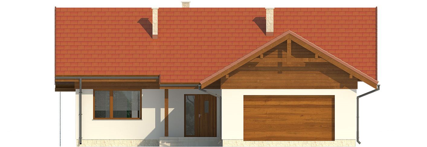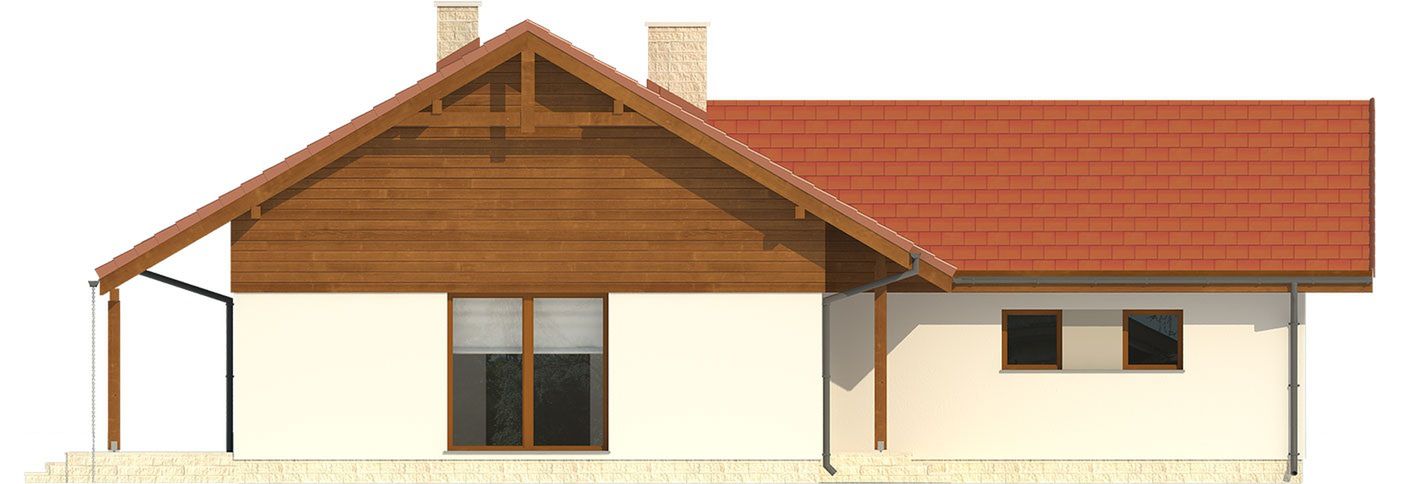 Graficzne opracowanie rzutów poglądowych widocznych na karcie projektu zostało wykonane przez Extradom.pl. Prezentowane przez Extradom.pl wizualizacje wykonane zostały przez autora projektu i należy poczytywać je jedynie za przykład i propozycję wykończenia, wizję architektoniczną autora projektu. Ostateczne wykończenie budynku może nastąpić na wiele sposobów. Szczegółowe rozwiązania zastosowane w oferowanej dokumentacji - w tym również ilość, lokalizacje i wygląd okien, drzwi, kominów - mogą w niewielkim stopniu różnić się od prezentowanej wizualizacji budynku.