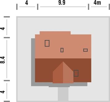 Graficzne opracowanie rzutów poglądowych widocznych na karcie projektu zostało wykonane przez Extradom.pl. Prezentowane przez Extradom.pl wizualizacje wykonane zostały przez autora projektu i należy poczytywać je jedynie za przykład i propozycję wykończenia, wizję architektoniczną autora projektu. Ostateczne wykończenie budynku może nastąpić na wiele sposobów. Szczegółowe rozwiązania zastosowane w oferowanej dokumentacji - w tym również ilość, lokalizacje i wygląd okien, drzwi, kominów - mogą w niewielkim stopniu różnić się od prezentowanej wizualizacji budynku.