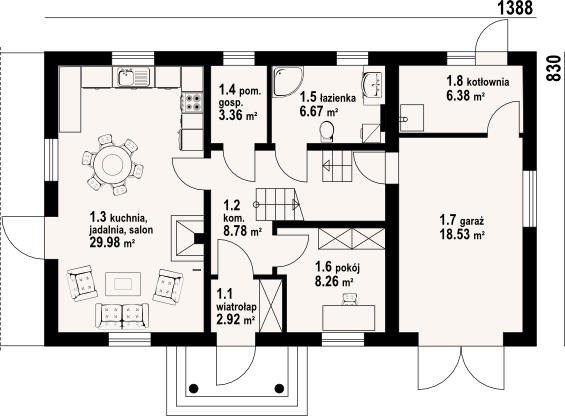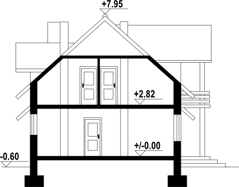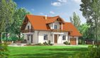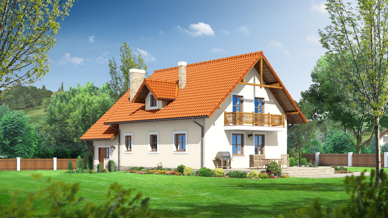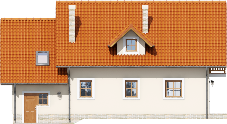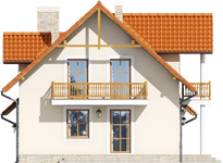 Graficzne opracowanie rzutów poglądowych widocznych na karcie projektu zostało wykonane przez Extradom.pl. Prezentowane przez Extradom.pl wizualizacje wykonane zostały przez autora projektu i należy poczytywać je jedynie za przykład i propozycję wykończenia, wizję architektoniczną autora projektu. Ostateczne wykończenie budynku może nastąpić na wiele sposobów. Szczegółowe rozwiązania zastosowane w oferowanej dokumentacji - w tym również ilość, lokalizacje i wygląd okien, drzwi, kominów - mogą w niewielkim stopniu różnić się od prezentowanej wizualizacji budynku.