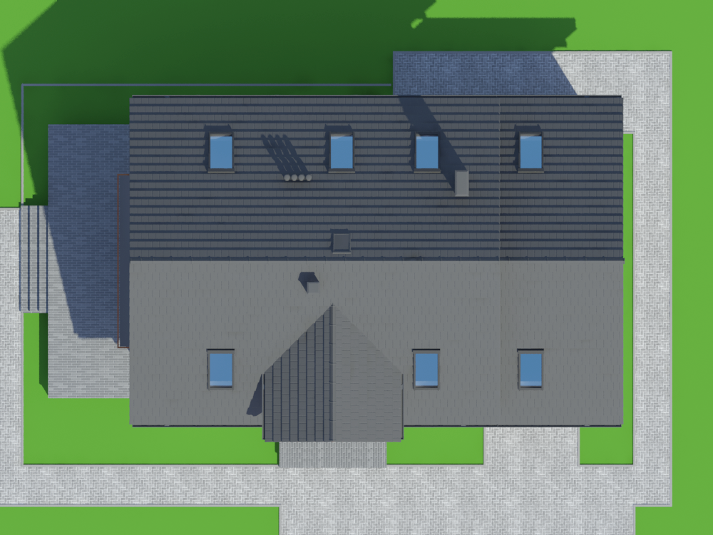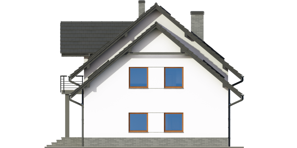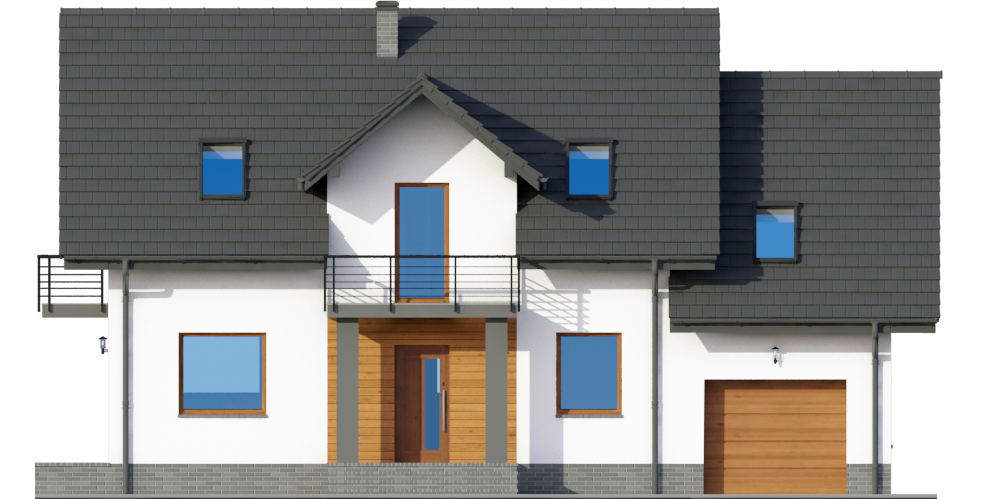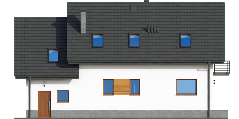 Graficzne opracowanie rzutów poglądowych widocznych na karcie projektu zostało wykonane przez Extradom.pl. Prezentowane przez Extradom.pl wizualizacje wykonane zostały przez autora projektu i należy poczytywać je jedynie za przykład i propozycję wykończenia, wizję architektoniczną autora projektu. Ostateczne wykończenie budynku może nastąpić na wiele sposobów. Szczegółowe rozwiązania zastosowane w oferowanej dokumentacji - w tym również ilość, lokalizacje i wygląd okien, drzwi, kominów - mogą w niewielkim stopniu różnić się od prezentowanej wizualizacji budynku.