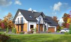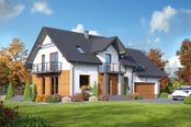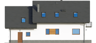 Graficzne opracowanie rzutów poglądowych widocznych na karcie projektu zostało wykonane przez Extradom.pl. Prezentowane przez Extradom.pl wizualizacje wykonane zostały przez autora projektu i należy poczytywać je jedynie za przykład i propozycję wykończenia, wizję architektoniczną autora projektu. Ostateczne wykończenie budynku może nastąpić na wiele sposobów. Szczegółowe rozwiązania zastosowane w oferowanej dokumentacji - w tym również ilość, lokalizacje i wygląd okien, drzwi, kominów - mogą w niewielkim stopniu różnić się od prezentowanej wizualizacji budynku.
