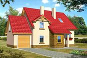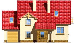 Graficzne opracowanie rzutów poglądowych widocznych na karcie projektu zostało wykonane przez Extradom.pl. Prezentowane przez Extradom.pl wizualizacje wykonane zostały przez autora projektu i należy poczytywać je jedynie za przykład i propozycję wykończenia, wizję architektoniczną autora projektu. Ostateczne wykończenie budynku może nastąpić na wiele sposobów. Szczegółowe rozwiązania zastosowane w oferowanej dokumentacji - w tym również ilość, lokalizacje i wygląd okien, drzwi, kominów - mogą w niewielkim stopniu różnić się od prezentowanej wizualizacji budynku.