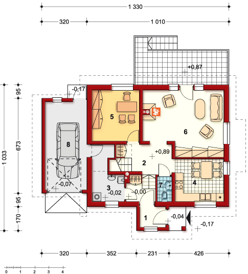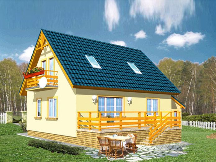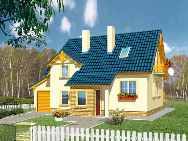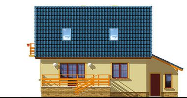 Graficzne opracowanie rzutów poglądowych widocznych na karcie projektu zostało wykonane przez Extradom.pl. Prezentowane przez Extradom.pl wizualizacje wykonane zostały przez autora projektu i należy poczytywać je jedynie za przykład i propozycję wykończenia, wizję architektoniczną autora projektu. Ostateczne wykończenie budynku może nastąpić na wiele sposobów. Szczegółowe rozwiązania zastosowane w oferowanej dokumentacji - w tym również ilość, lokalizacje i wygląd okien, drzwi, kominów - mogą w niewielkim stopniu różnić się od prezentowanej wizualizacji budynku.