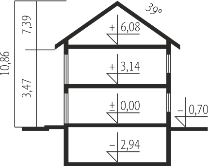 Ściany zewnętrzne: murowane. Strop: gęstożebrowy. Dach: konstrukcja drewniana, dachówka cementową. Ogrzewanie: kocioł gazowy, rozprowadzenie ciepła: grzejniki. Wentylacja: grawitacyjna. Elewacje: tynk strukturalny oraz płytka klinkierowa. Stolarka: drewniana lub PCV.
