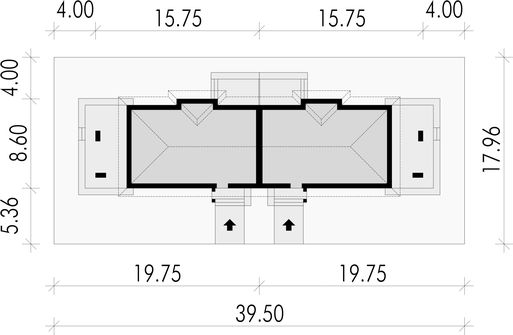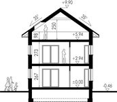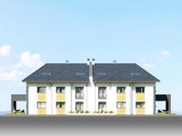 Graficzne opracowanie rzutów poglądowych widocznych na karcie projektu zostało wykonane przez Extradom.pl. Prezentowane przez Extradom.pl wizualizacje wykonane zostały przez autora projektu i należy poczytywać je jedynie za przykład i propozycję wykończenia, wizję architektoniczną autora projektu. Ostateczne wykończenie budynku może nastąpić na wiele sposobów. Szczegółowe rozwiązania zastosowane w oferowanej dokumentacji - w tym również ilość, lokalizacje i wygląd okien, drzwi, kominów - mogą w niewielkim stopniu różnić się od prezentowanej wizualizacji budynku.