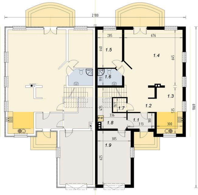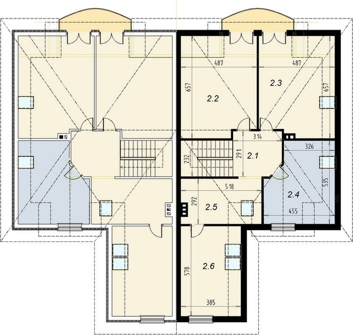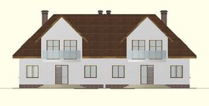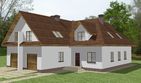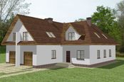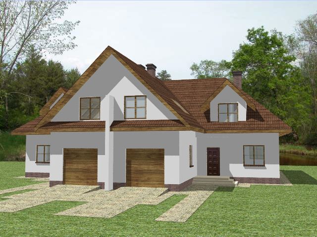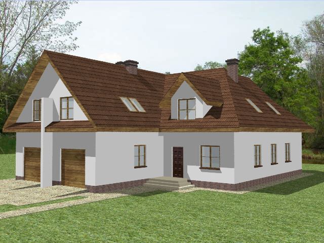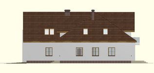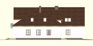 Graficzne opracowanie rzutów poglądowych widocznych na karcie projektu zostało wykonane przez Extradom.pl. Prezentowane przez Extradom.pl wizualizacje wykonane zostały przez autora projektu i należy poczytywać je jedynie za przykład i propozycję wykończenia, wizję architektoniczną autora projektu. Ostateczne wykończenie budynku może nastąpić na wiele sposobów. Szczegółowe rozwiązania zastosowane w oferowanej dokumentacji - w tym również ilość, lokalizacje i wygląd okien, drzwi, kominów - mogą w niewielkim stopniu różnić się od prezentowanej wizualizacji budynku.