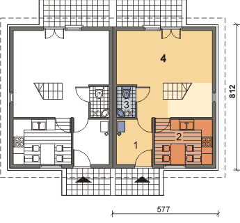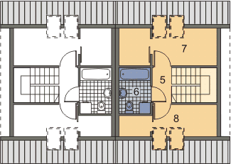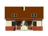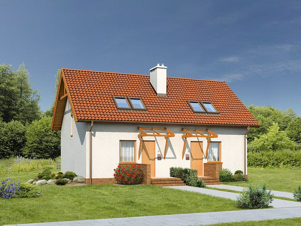 Własny dom zamiast mieszkania Dom B01 Sówka, bliźniak: dom parterowy z użytkowym poddaszem, niepodpiwniczony. Jest propozycją alternatywną : "własny dom zamiast mieszkania". Plan domu jest bardzo prosty, a realizacja szybka i tania. Na parterze znajduje się przedsionek i jednoprzestrzenne wnętrze mieszkalne o powierzchni około 26 m2 z wydzieloną kuchnią, małą łazienką i schodami prowadzącymi na poddasze (pod którymi można wydzielić małe pomieszczenie gospodarcze). Na poddaszu jest część nocna: dwie sypialnie i łazienka. Dom ma więc wszystko, czego potrzeba rodzinie 3-4 osobowej, biorąc pod uwagę standardy i powierzchnie mieszkań w domu wielorodzinnym. Z powodzeniem może pełnić funkcję domku letniego. Segmenty domu B01 znakomicie dają się zestawiać w zabudowę szeregową. W dokumentacji opracowano oba segmenty. Projekt domu Bliźniaczego można zaadoptować na dom szeregowy, dom letniskowy lub dwurodzinny. Segment bliźniaka B01 idealnie nadaje się do posadowienia na bardzo wąskiej działce - minimalne wymiary 9,77 x 16,12 m, a przy rezygnacji z okien w ścianach szczytowych (doświetlają tylko schody) nawet na działce o szerokości mniejszej niż 9m (minimalne wymiary 8,77 x 16,12 m). Technologia: Dom można zbudować w różnych technologiach - od szybkiej w realizacji technologii szkieletu drewnianego, do solidniejszej tradycyjnej murowanej. Dach przekryty dachówką ceramiczną, betonową, lub z blachy. Nad wejściem znajduje się lekki daszek, a ściany w styku z gruntem omurowane są elewacyjną cegłą klinkierową. Wykończenie: Dach przekryty dachówką ceramiczną, betonową, lub z blachy. Nad wejściem znajduje się lekki daszek, a ściany w styku z gruntem omurowane są elewacyjną cegłą klinkierową. Projekt był opublikowany na łamach Dodatku do Dziennika Bałtyckiego i Wieczoru Wybrzerza w październiku 2001 roku.