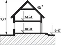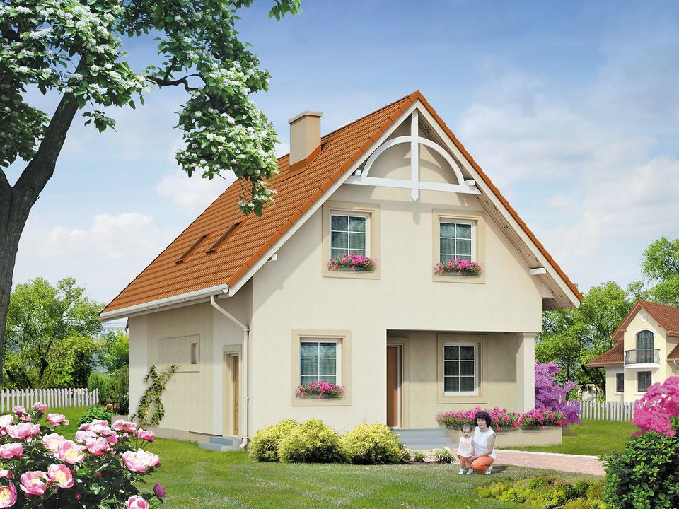 Ściany: 2-warstwowe - pustak ceramiczny + styropian. Stropy: żelbetowe, wylewane. Dach: dachówka ceramiczna, kąt nachylenia 45°. Ogrzewanie: gazowe, pakiet "Kotłownia na paliwo stałe", olejowe.