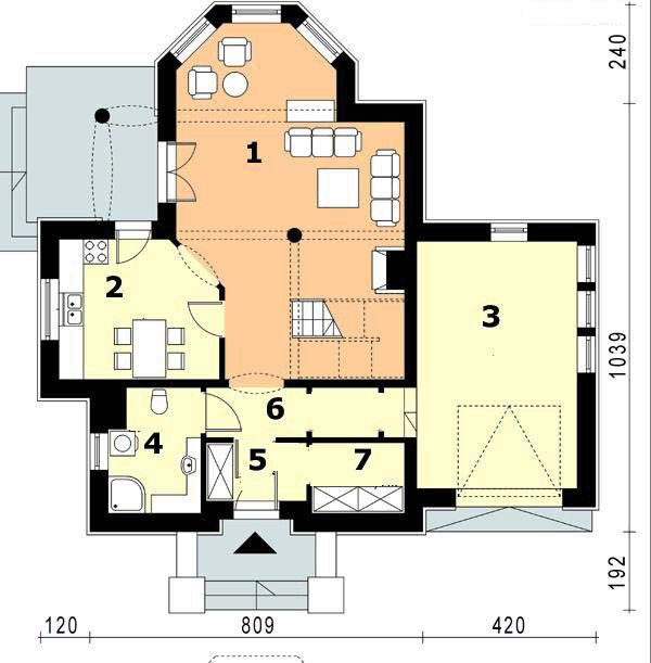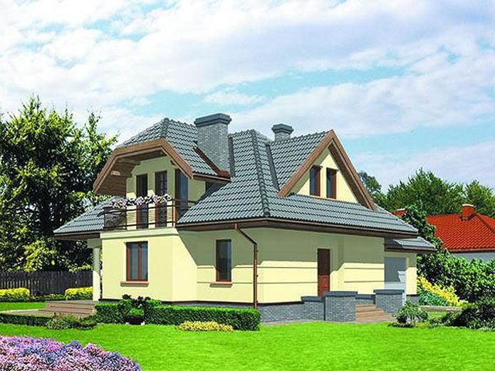 Graficzne opracowanie rzutów poglądowych widocznych na karcie projektu zostało wykonane przez Extradom.pl. Prezentowane przez Extradom.pl wizualizacje wykonane zostały przez autora projektu i należy poczytywać je jedynie za przykład i propozycję wykończenia, wizję architektoniczną autora projektu. Ostateczne wykończenie budynku może nastąpić na wiele sposobów. Szczegółowe rozwiązania zastosowane w oferowanej dokumentacji - w tym również ilość, lokalizacje i wygląd okien, drzwi, kominów - mogą w niewielkim stopniu różnić się od prezentowanej wizualizacji budynku.